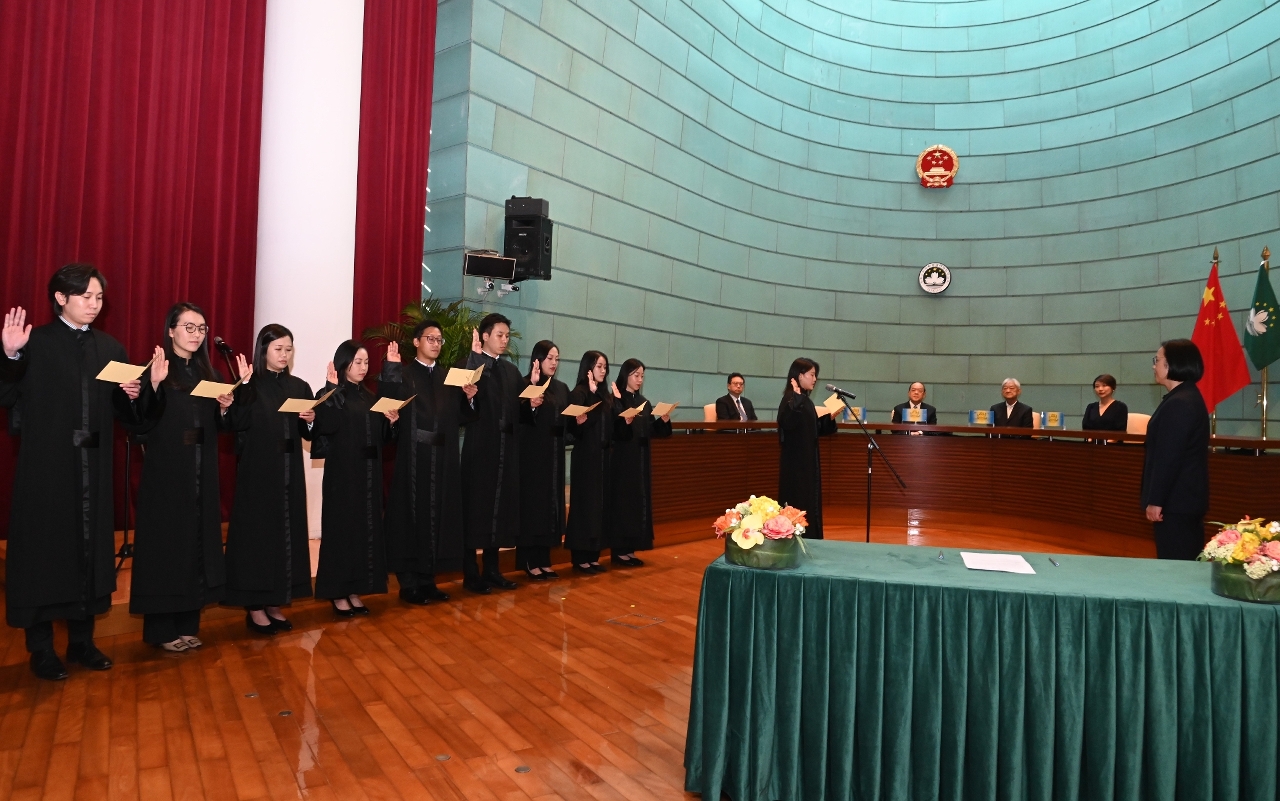 2024年10月15日下午3時30分,於終審及中級法院大樓審判庭舉行就職儀式。上述十五名法官在終審法院代院長宋敏莉主持及監誓下宣誓就職,行政長官賀一誠、推薦法官的獨立委員會主席劉焯華、中級法院院長唐曉峰及第一審法院院長姚頴珊列席主禮台。行政法務司司長、檢察院檢察長、廉政專員、推薦法官的獨立委員會委員、澳門律師公會理事會主席、各級法院法官及檢察官、相關部門領導等嘉賓以及法院眾多職員出席就職儀式。