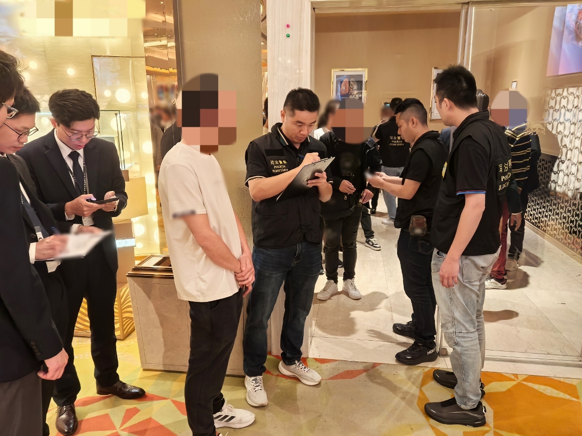 同日晚上,司警局、博監局合共派出17名人員於路氹城區多家娛樂場內展開反罪惡突擊巡查聯合行動,會同相關娛樂場保安部人員巡查場內情況。是次聯合行動截查了共146名人士(128男18女),並未發現涉及不法匯兌或其他犯罪;其中3名逾期逗留的內地居民(2男1女),經完成相關調查程序後已移交治安警察局處理。