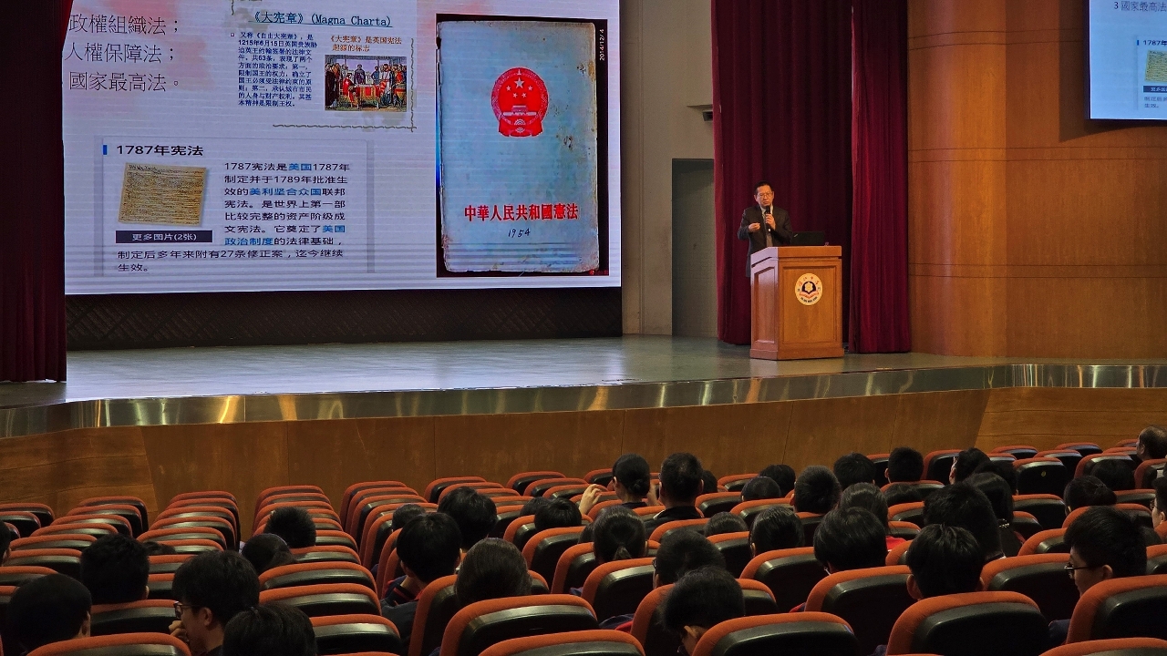 講座上,王禹教授以“國號國旗國歌國徽”、“中國憲法是中國人民尋找民族復興道路的產物和法制化”、“憲法第31條”、“‘不可分離’的法律認識”為主題深入講解有關憲法的概念和特徵、國家的象徵和標誌、《憲法》與《基本法》共同構成特別行政區憲制基礎等內容。其後,在互動問答環節中,學生踴躍提問,現場氣氛熱烈。