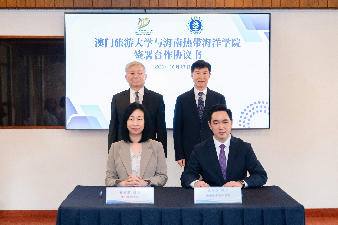 海南省人民政府省長劉小明於10月13日率團訪問澳門旅遊大學,受到澳旅大校董會主席陳澤武、校長黃竹君等的熱烈接待。雙方就瓊澳兩地高等教育合作進行座談交流,同場澳旅大分別與海南大學及海南熱帶海洋學院簽署合作協議,將進一步深化交流與合作,充分整合兩地旅遊教育及人才培養的資源,攜手推動中國旅遊教育與產業的高質量發展。
