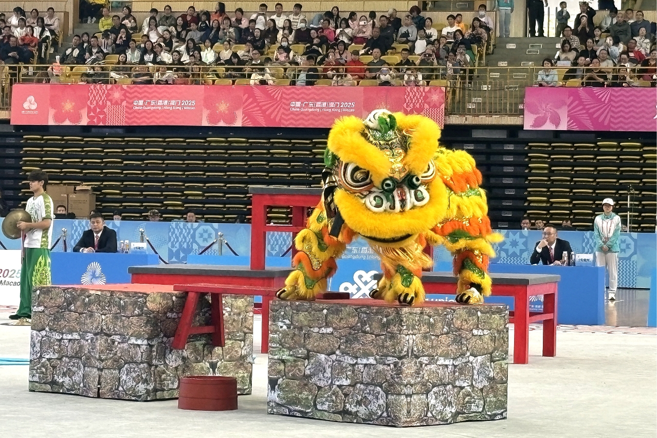 舞龍舞獅最後一日賽事,由三地運動員組成的粵港澳聯隊及澳門隊一同出戰南獅傳統項目,最後分別以9.19分及8.9分排名第2位和第6位,最終獲頒二等獎和三等獎,並已完成本屆所有賽事。