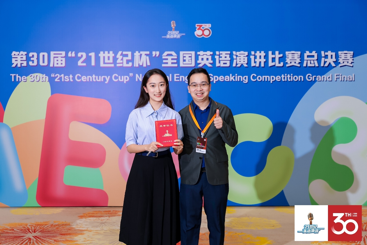 “21世紀杯”比賽流程嚴謹、主題鮮明,是全國最高級別的英語演講競賽。比賽歷經10個月的初賽、複賽和省賽,最終大學組300多名選手晉級全國總決賽。澳大兩位學生以流利的英語、創新的觀點和深刻的思考,贏得了評委、其他高校指導老師與觀眾的高度評價。盧藹琳和張珈歡分別獲得全國一等獎和二等獎。