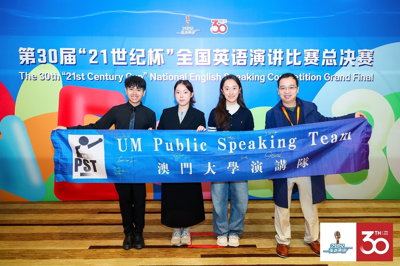 澳門大學學生在浙江杭州舉行的第30屆“21世紀杯”全國英語演講比賽總決賽暨第七屆“一帶一路”青少年英語演講比賽全球總決賽中表現出色,分別榮獲“21世紀杯”全國一等獎、全國二等獎,以及“一帶一路”國際組二等獎。“21世紀杯”覆蓋全國 30多個省、市、自治區,參賽選手超過60萬名。