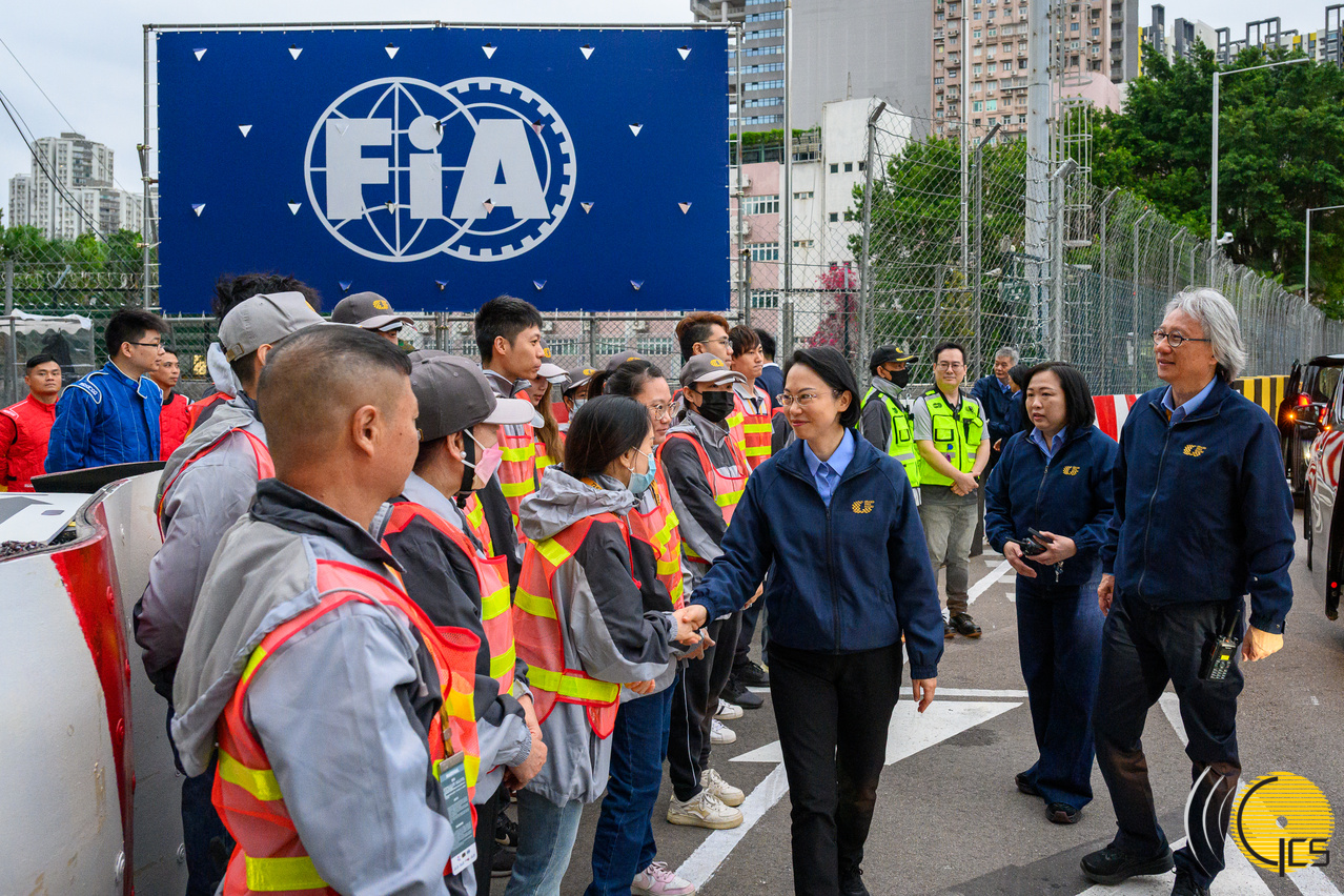 • The Secretary for Social Affairs and Culture and President of the Macau Grand Prix Organizing Committee, Ms O Lam, inspects the Guia Circuit ahead of the first warm-up session of the 72nd Macau Grand Prix.