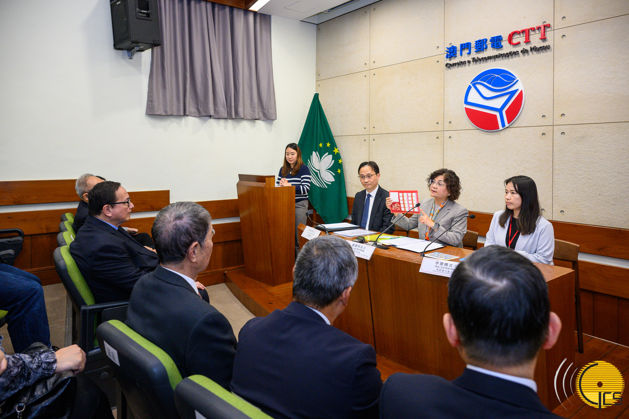 The Post and Telecommunications Bureau hosts a press conference on the issuance of two sets of stamps titled “Centenary of the Founding of Yuet Wah College” and “30th Anniversary of Macau International Airport”.