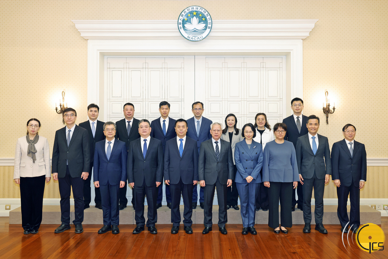 • The Chief Executive, Mr Sam Hou Fai, poses for a photograph with a delegation led by the Minister and Secretary of the Leading Party Members' Group of the National Health Commission, Mr Lei Haichao, at the Government Headquarters in Macao.