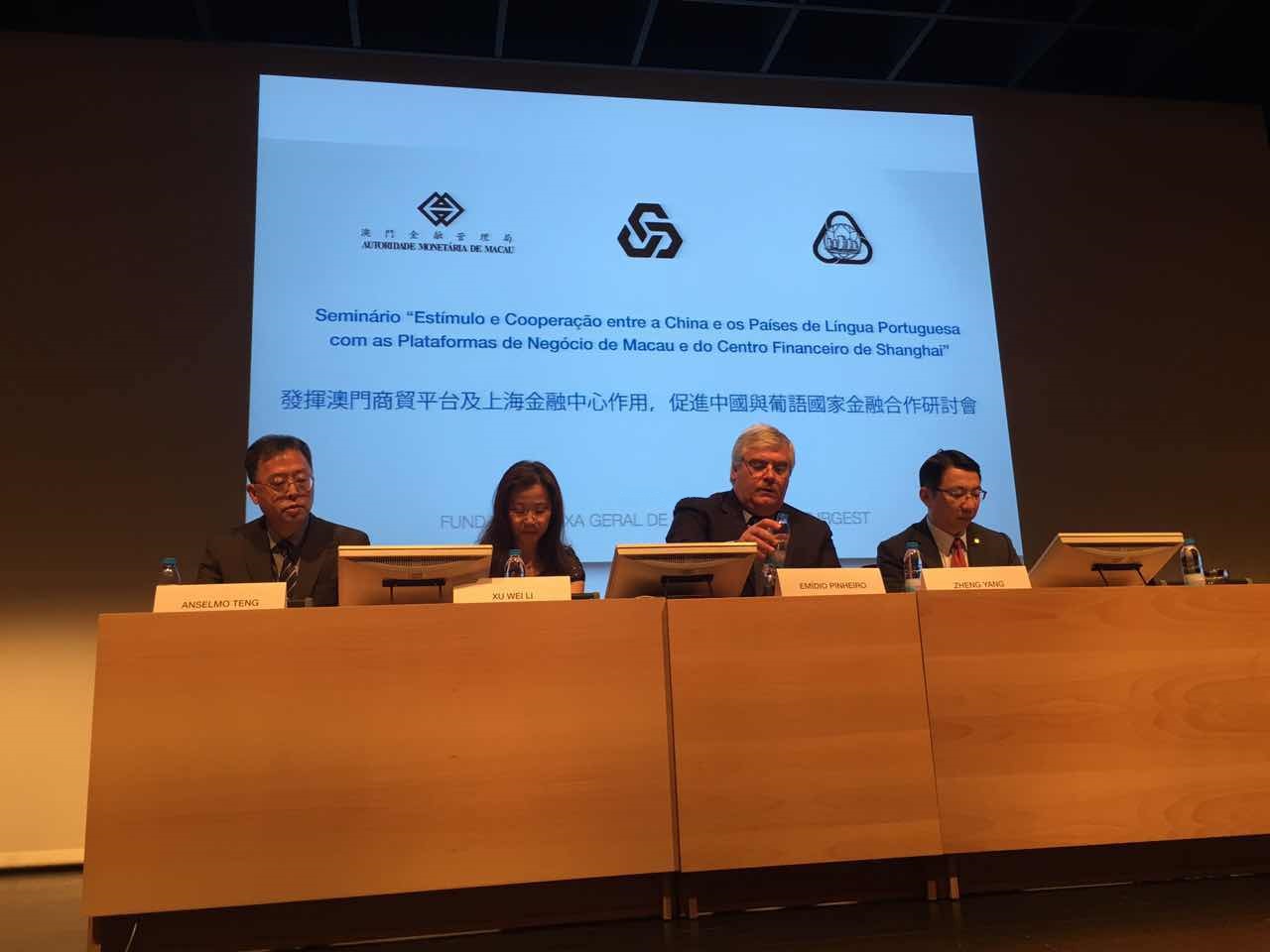 In line with the spirits and concensus of the Memorandum of Understanding on financial cooperation between Shanghai and Macao, the Monetary Authority of Macao (AMCM) and the Shanghai Financial Services Office (SFSO) jointly hosted a seminar in Lisbon, Portugal. In the seminar, both institutions presented the economic and financial situations of Macao and Shanghai respectively to the local financial institutions and business enterprises, highlighting the important functions of Macao as the “Commercial and Trade Cooperation Service Platform between China and Portuguese-speaking Countries”, as well as the development of Shanghai as an international financial centre, in order to promote and deepen the financial cooperation among Mainland China, Macao SAR and Portuguese-speaking countries.