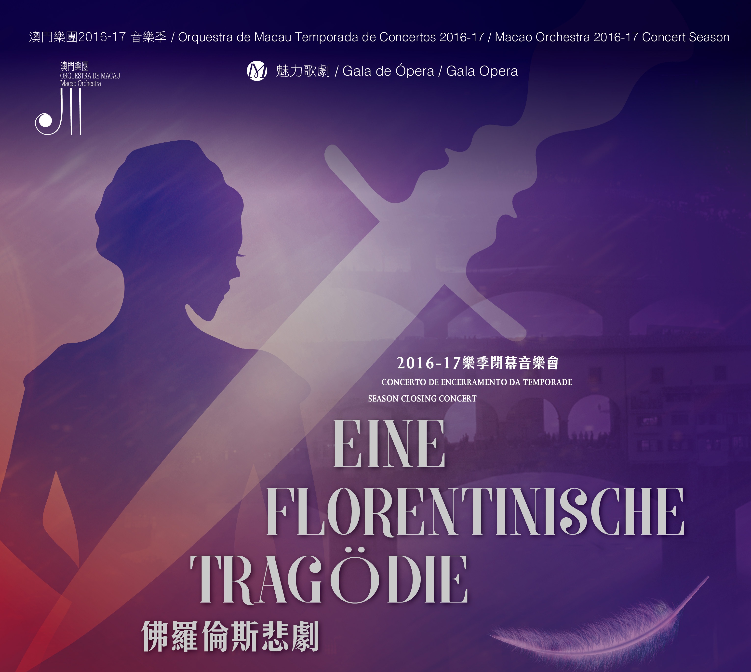 Tickets for the concert “2016-2017 Season Closing Concert ─ Eine florentinische Tragödie” are priced at MOP400, MOP350, MOP250 and MOP150. Holders of Bank of China multi-currency credit card or Bank of China card enjoy an exclusive discount of 30%. Ticketing hotline: 2855 5555. For details and enquiries about the programme, please contact OM through tel. no. 2853 0782 during office hours or visit the Macao Orchestra’s website at www.icm.gov.mo/om.