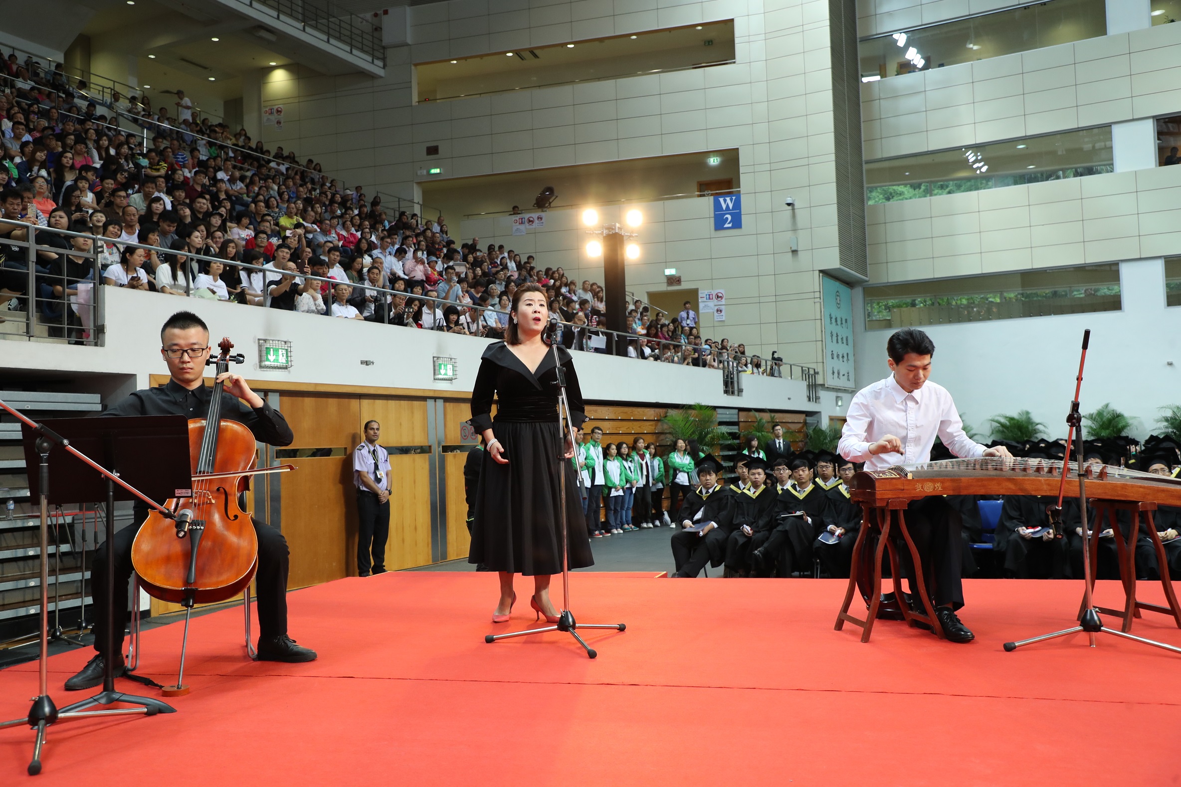 The graduation ceremony was formally held at the MPI Sports Pavillion on the afternoon of 19 June. It was officiated by the Chief Executive Dr. Chui Sai On, who was joined by Mr. Tam Chon Weng, Secretary for Social Affairs and Culture, and Professor Lei Heong Iok, President of MPI. Other distinguished guests also attended the ceremony included Mr Pu Hailong, representing the Liaison Office of the Central People's Government in the Macao SAR, members of the Legislative Council, members of MPI's Advisory Committee, other government officials, social elites and dignitaries, principals of secondary schools, parents and MPI faculty and staff. The guests were overjoyed to witness this exciting graduation ceremony and to share the joys with all graduates.