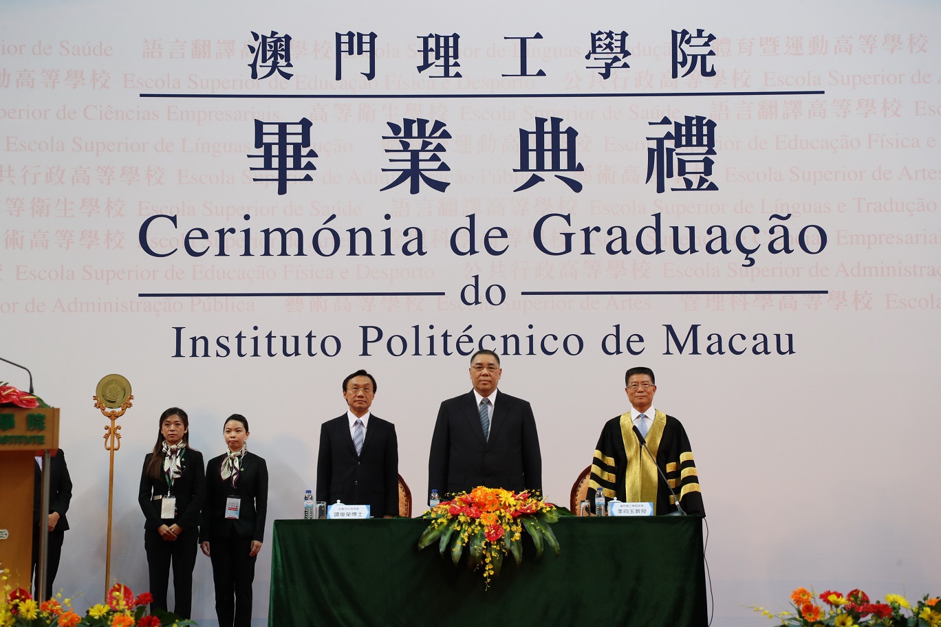 The Macao Polytechnic Institute held the graduation ceremony for the academic year 2016-2017, witnessing a total cohort of 650 students graduating from its 20 Bachelor's degree programs and majors this year. The Chief Executive of Macao Dr. Chui Sai On officiated the ceremony and underscored the SAR government's commitments to promoting the development of education, and to driving the education industry towards modernization and smart management, and stimulating innovation in education. The SAR government is resolved to establish effective and sustained mechanisms for its education system and talents training. To that effect, the government pledged mufti-layered measures to develop the education industry, through policy supports, resource investment, continuous refinement of mechanisms etc. The Chief Executive also encouraged MPI to leverage its unique strengths and advantages so as to provide more professional and practical talents to Macao.
