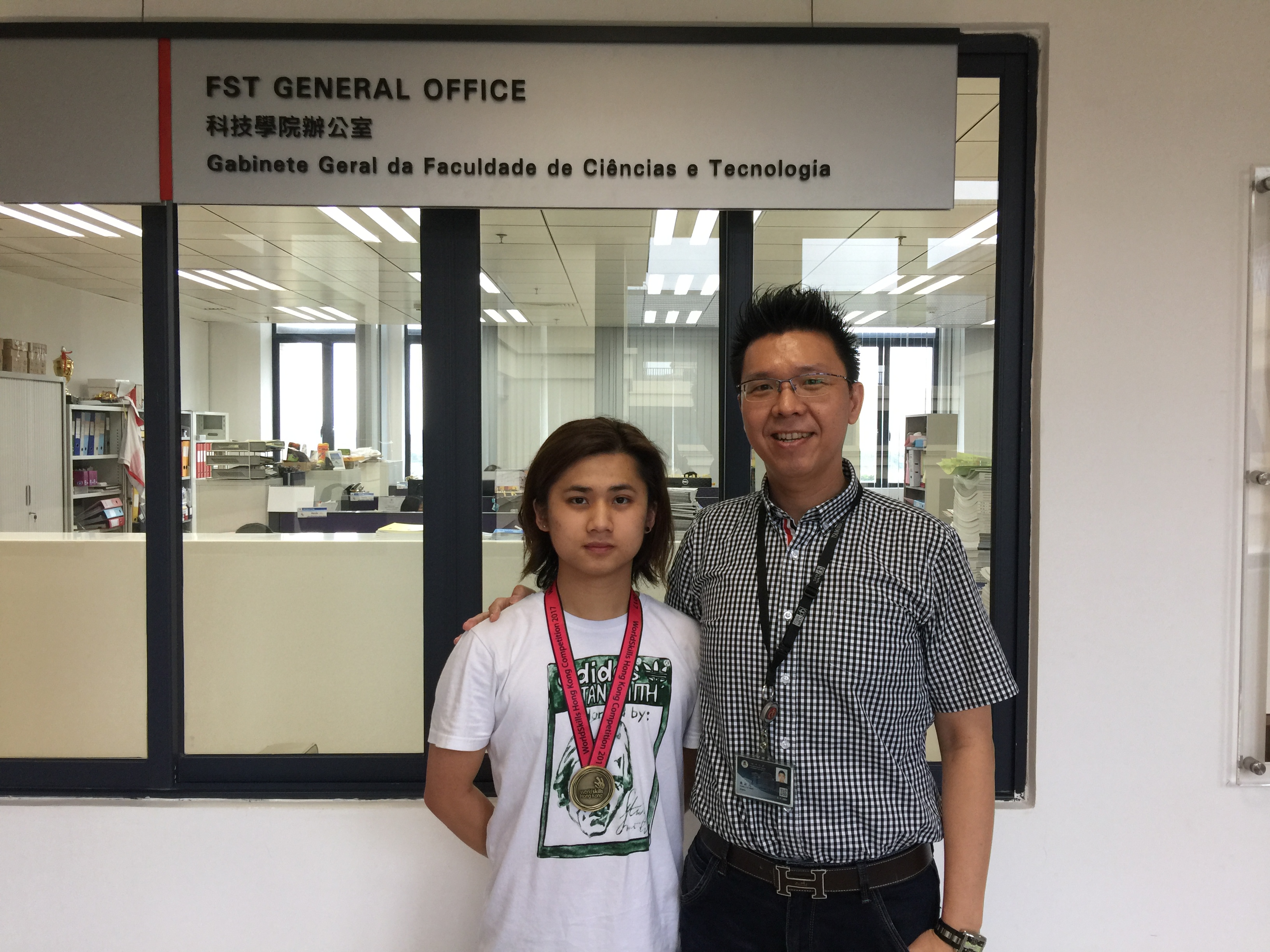 Chio Wan Long, a first-year student from the Department of Computer and Information Science, Faculty of Science and Technology, University of Macau (UM), recently won a bronze medal at WorldSkills Hong Kong 2017 - Mobile Robotics. Chio’s medal-winning robot was developed under the supervision of Associate Professor Vong Chi Man.