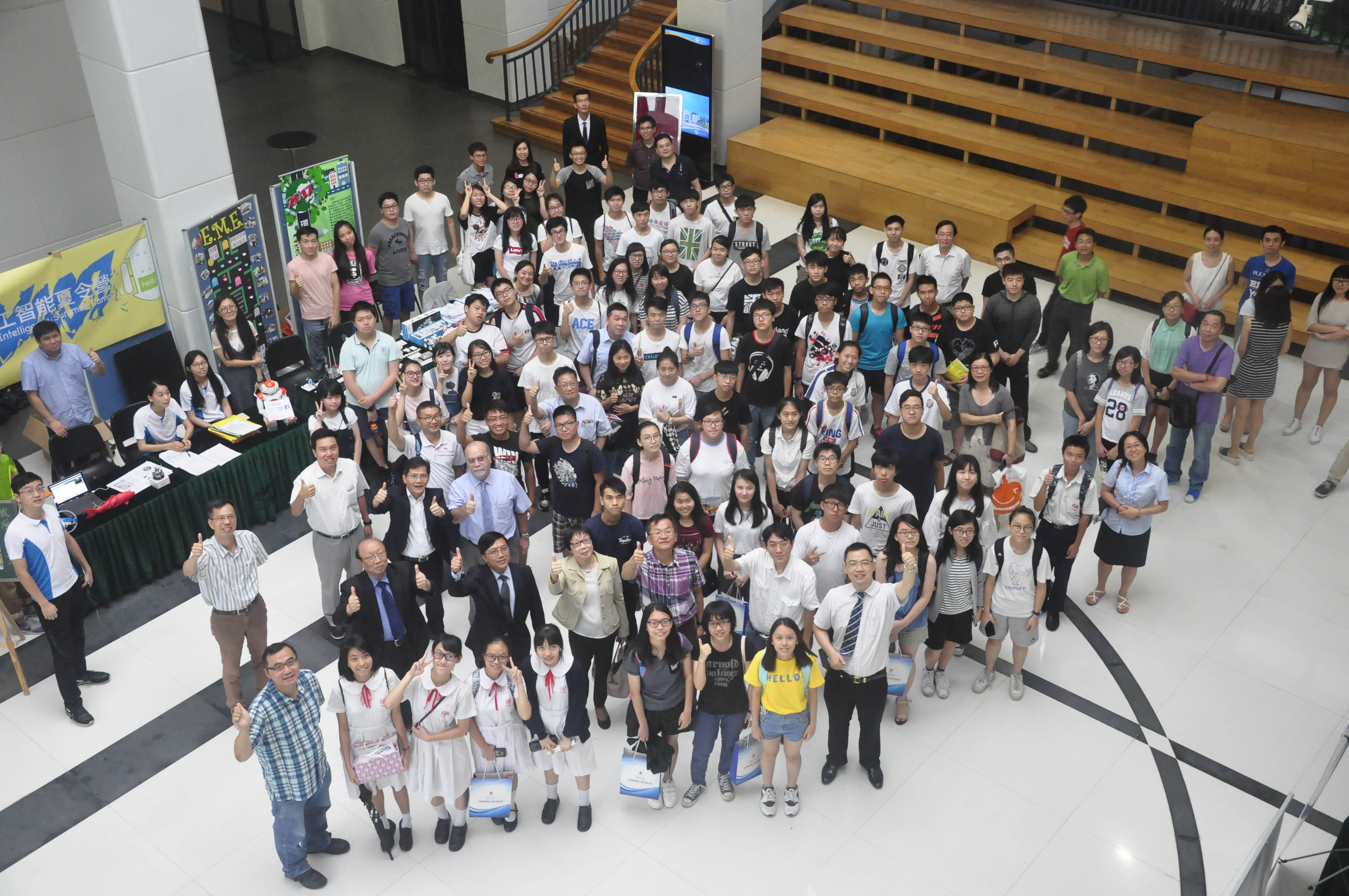 This year’s six summer camps cover various topics, namely Civil Engineering Summer Camp, 3D Reconstruction with Quadcopters Summer Camp, Computer Vision and Human-Machine Interaction Summer Camp, Wireless Technology Study Summer Camp, Robot and Artificial Intelligence Summer Camp, and Green Vehicle Summer Camp. Booths were set up at the opening ceremony to provide information about the camp and to showcase the works by participants from last year.