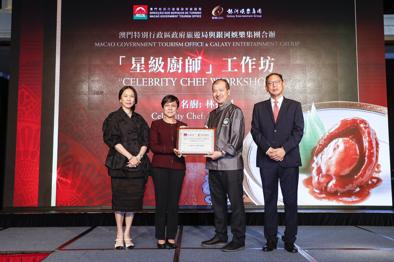 MGTO Director Maria Helena de Senna Fernandes and Deputy Director Cheng Wai Tong, Head of Training and Quality Management Department of MGTO, Doris Leong, Director of Galaxy Entertainment Group, Philip Cheng, and Group Director of Human Resources and Administration of Galaxy Entertainment Group, Eileen Lui, attended the Celebrity Chef Workshop held at Oasis Ballroom, Galaxy Macau together with others.
