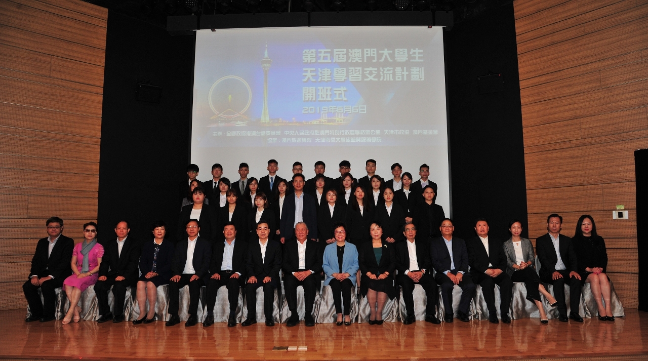 The 5th Tianjin Exchange Programme for Macao University Students was inaugurated at the Institute for Tourism Studies, Macao (IFT) on 6 June. The programme was organised by Committee for Liaison with Hong Kong, Macao, Taiwan and Overseas Chinese of the National Committee of the Chinese People’s Political Consultative Conference, Liaison Office of the Central People’s Government in the Macao SAR, Tianjin Municipal Committee of the Chinese People’s Political Consultative Conference, as well as Macao Foundation, and co-organised by IFT and College of Tourism and Service Management of Nankai University. The attending guests believed that the programme will enhance young people’s understanding of Tianjin and Mainland China, as well as to promote exchanges between Tianjin and Macao, which will help strengthen future collaborations between the two cities.