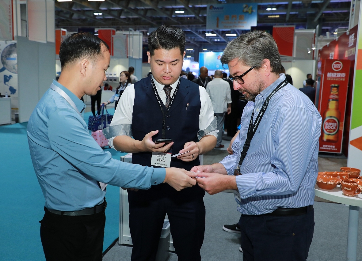 Today (18 October) the 24th Macao International Trade & Investment Fair (24th MIF) and 2019 Portuguese Speaking Countries Products and Services Exhibition (Macao) (2019PLPEX) continued to offer a series of professional conferences, forums and promotion sessions which attracted representatives from different industries to engage in the exchange and discussion. On the second day of the event, over 190 matching sessions took place at the Business Matching Area, and 30 agreements were signed. In addition, the Macao Industrial Modernization Matching Session resumed for the second day. Five enterprises took part in it, three of which showed their interest in acquiring ISO and M-Mark Macau Product Quality certification after the matching session.