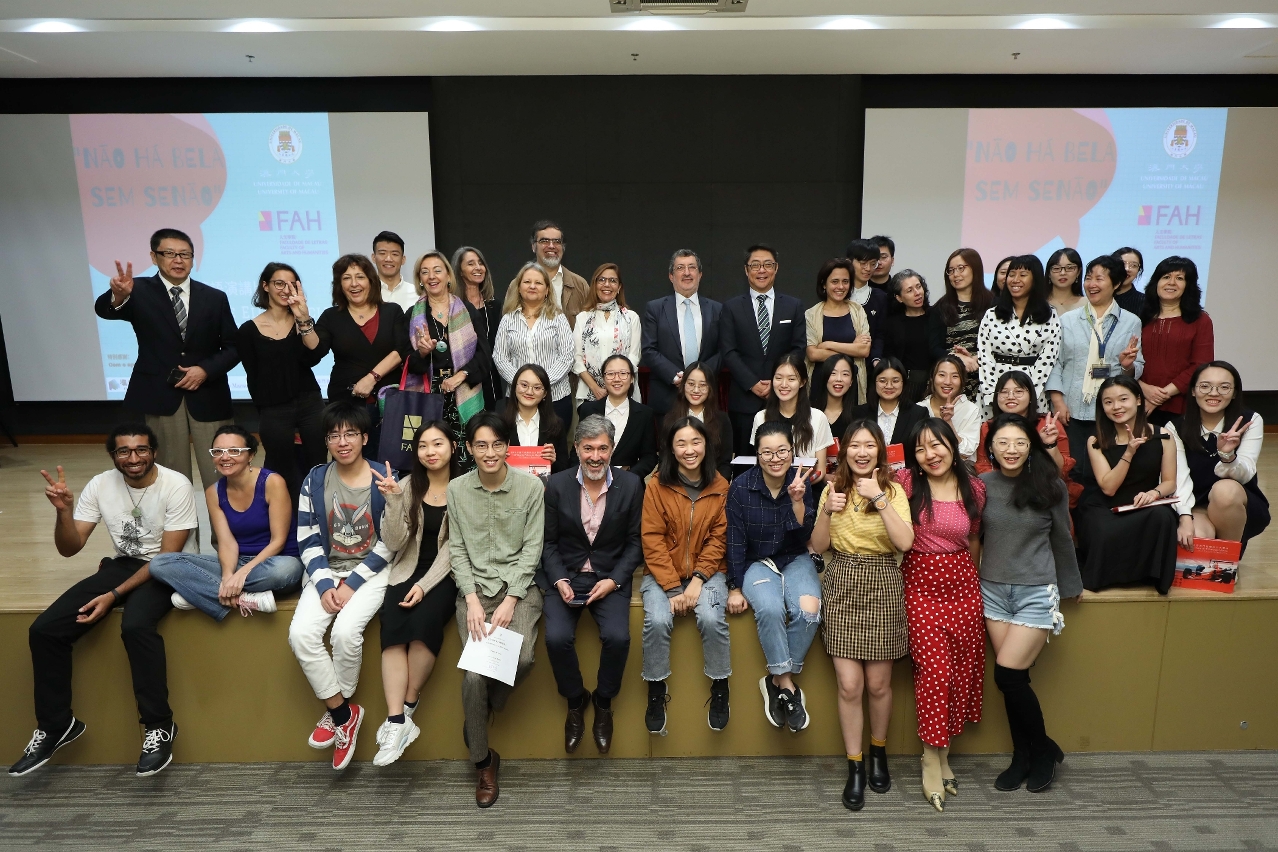 A total of nine students from UM, Macao Polytechnic Institute (IPM), and the Macau University of Science and Technology participated in the contest. The event attracted hundreds of students in the audience, and provided a good opportunity for them to listen to inspiring speeches in Portuguese and improve their ability to understand and speak the Portuguese language.