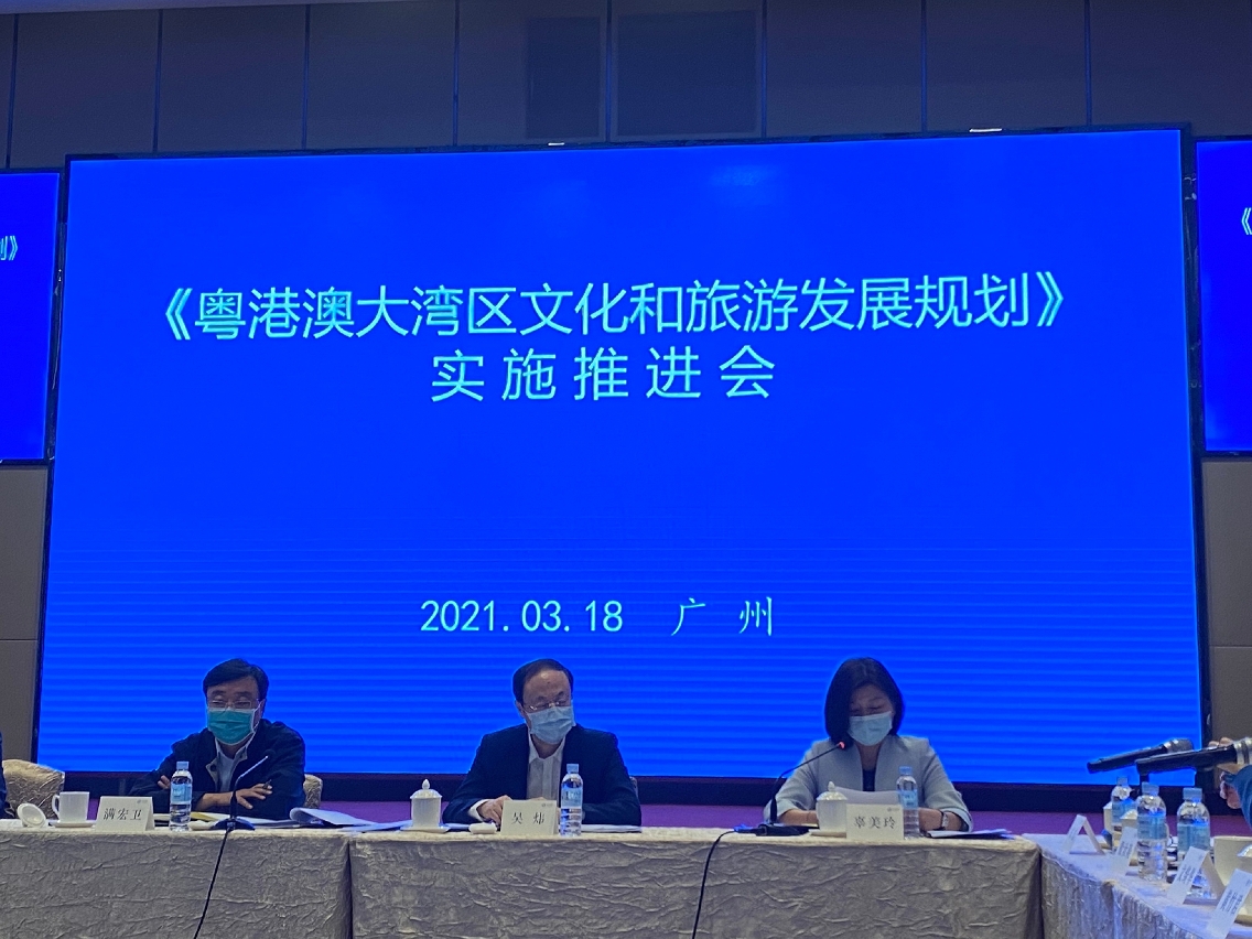 The meeting for fostering implementation of the “Culture and Tourism Development Plan for the Guangdong-Hong Kong-Macao Greater Bay Area” (referred to as the “Plan”) was held in Guangzhou on 18 March 2021. Convened in a hybrid online and offline format, the meeting gathered representatives of pertinent entities as follows: the National Development and Reform Commission; the Ministry of Culture and Tourism of the People’s Republic of China; Hong Kong and Macao Affairs Office of the State Council; related governmental departments of Guangdong Province, Hong Kong and Macao Special Administrative Regions; Liaison Office of the Central People's Government in the Hong Kong Special Administrative Region; Liaison Office of the Central People's Government in the Macao Special Administrative Region; cultural and tourism authorities of the nine Pearl River Delta cities, as well as experts and media representatives.