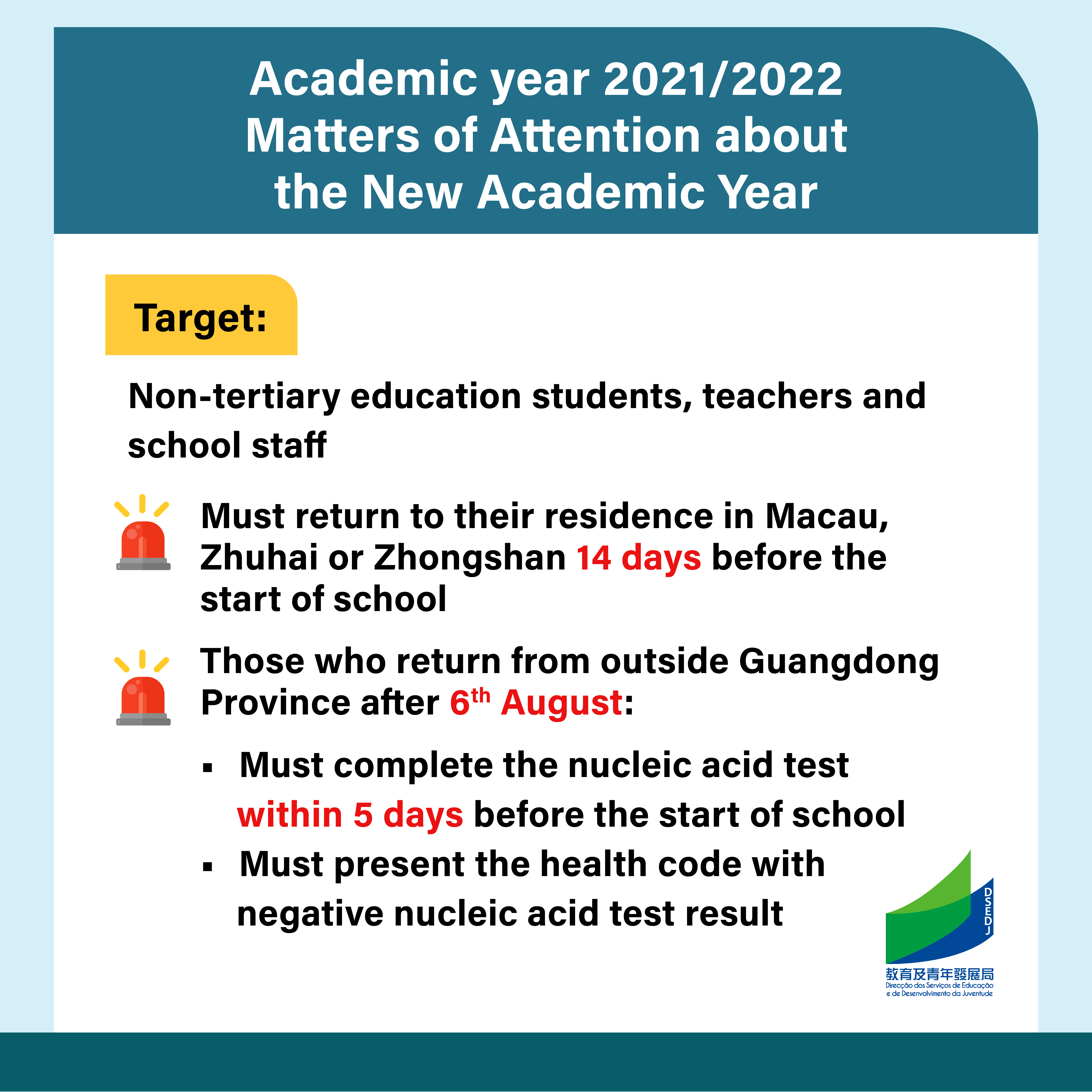 • Matters of Attention about the New Academic Year - Non-tertiary education students, teachers and school staff