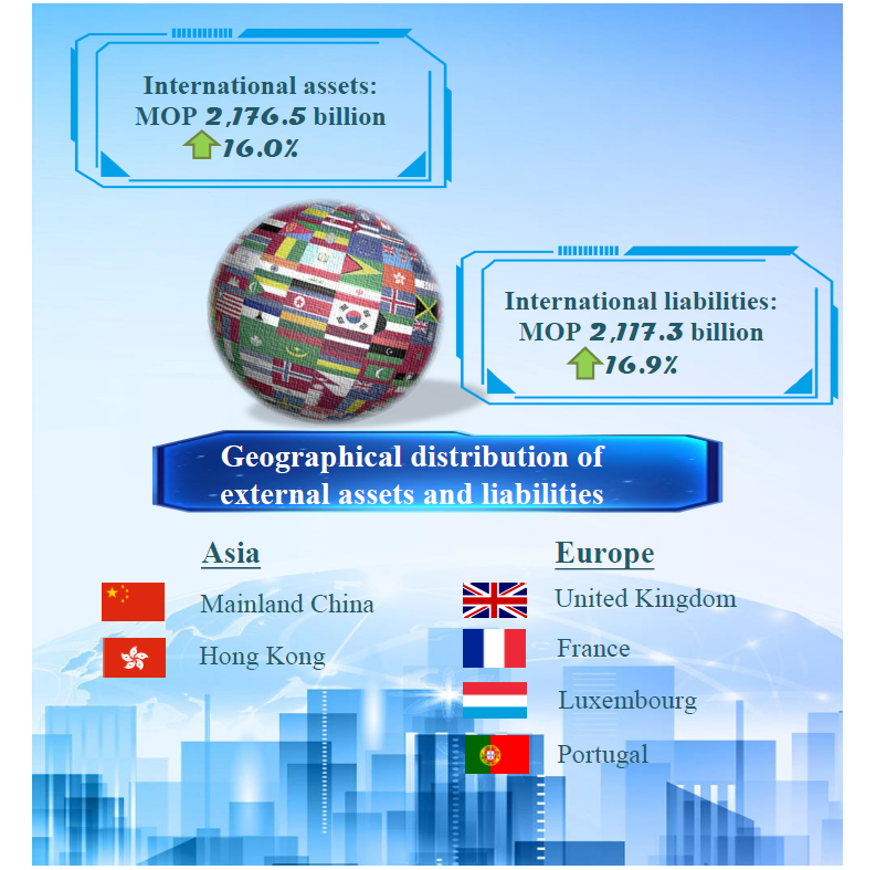 The majority of external assets and liabilities of the local banking sector were related to Asia and Europe. At end-June 2021, claims on Mainland China and Hong Kong occupied 45.7% and 27.3% of total external assets, while claims on Luxembourg and Portugal took up 1.0% and 0.9% respectively. Meanwhile, claims on Portuguese-speaking countries and countries along the “Belt and Road” occupied respective shares of 1.3% and 7.4%. On external liabilities, Mainland China and Hong Kong accounted for 40.1% and 35.3% of the total respectively, while the United Kingdom and France took up corresponding shares of 5.0% and 4.3%. Portuguese-speaking countries and countries along the “Belt and Road” represented 0.7% and 8.2% respectively.