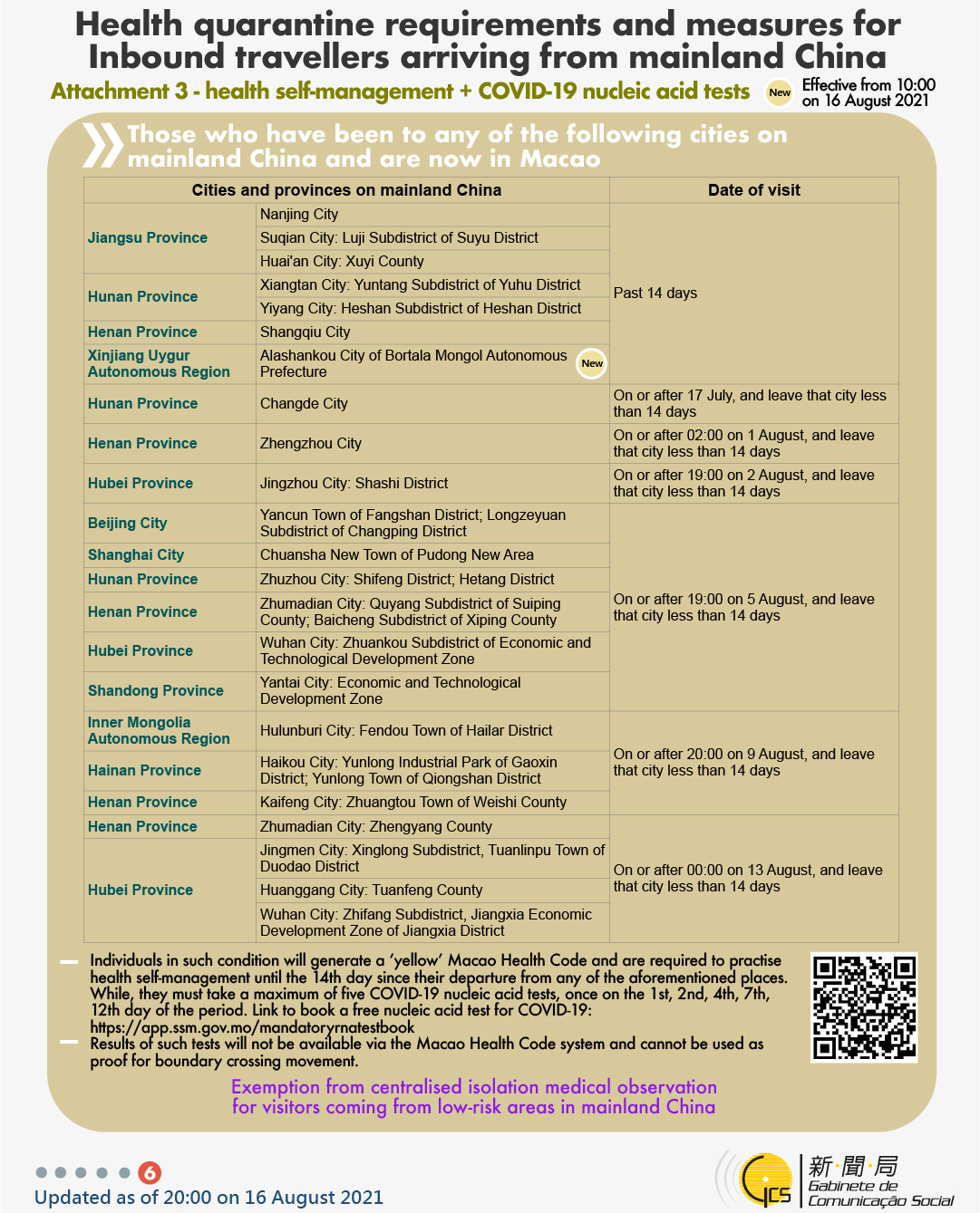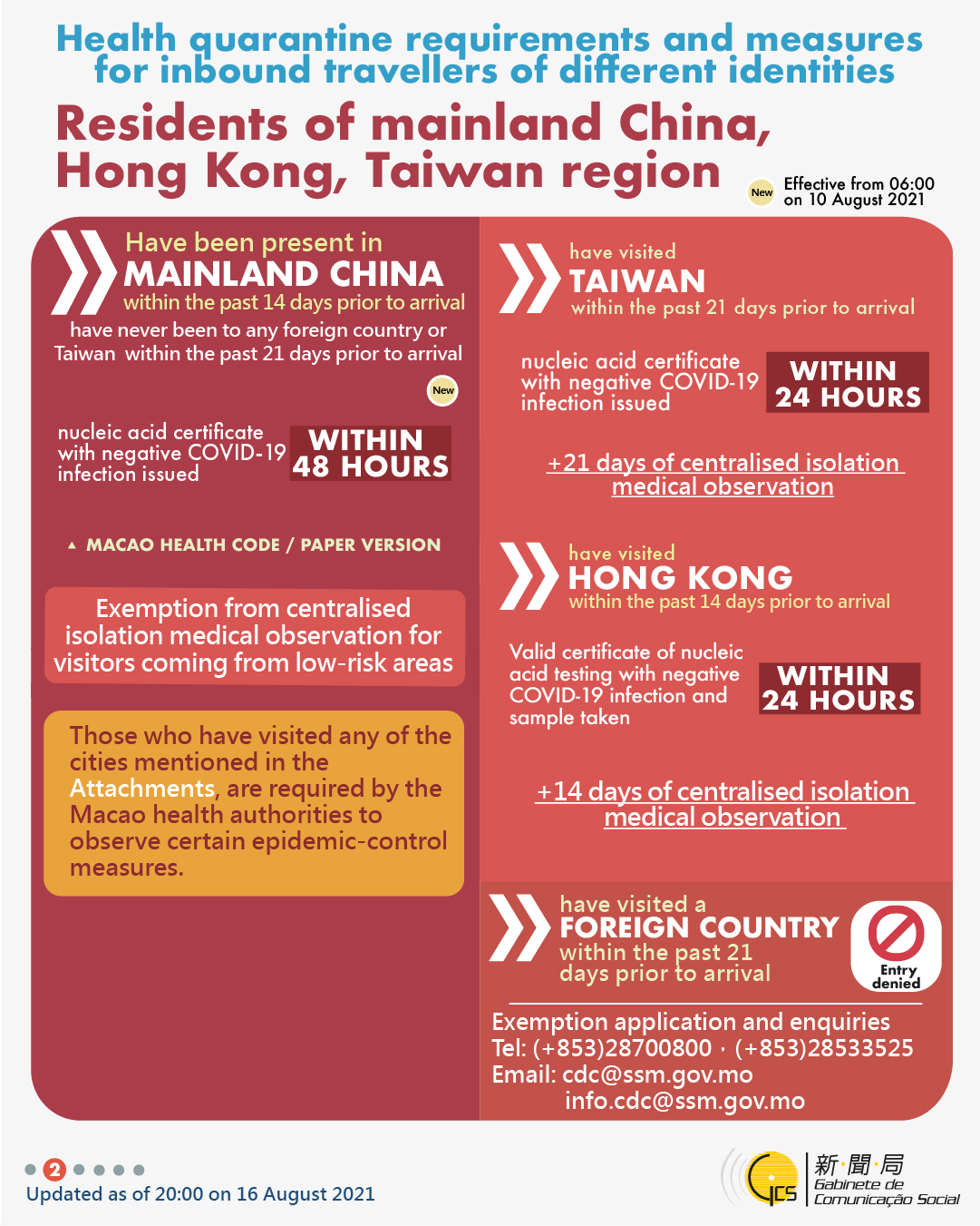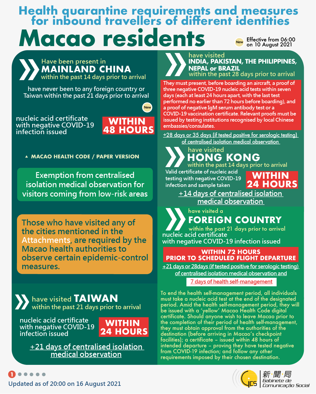 [infographic] 16 August 2021 health quarantine requirements and measures for inbound travellers