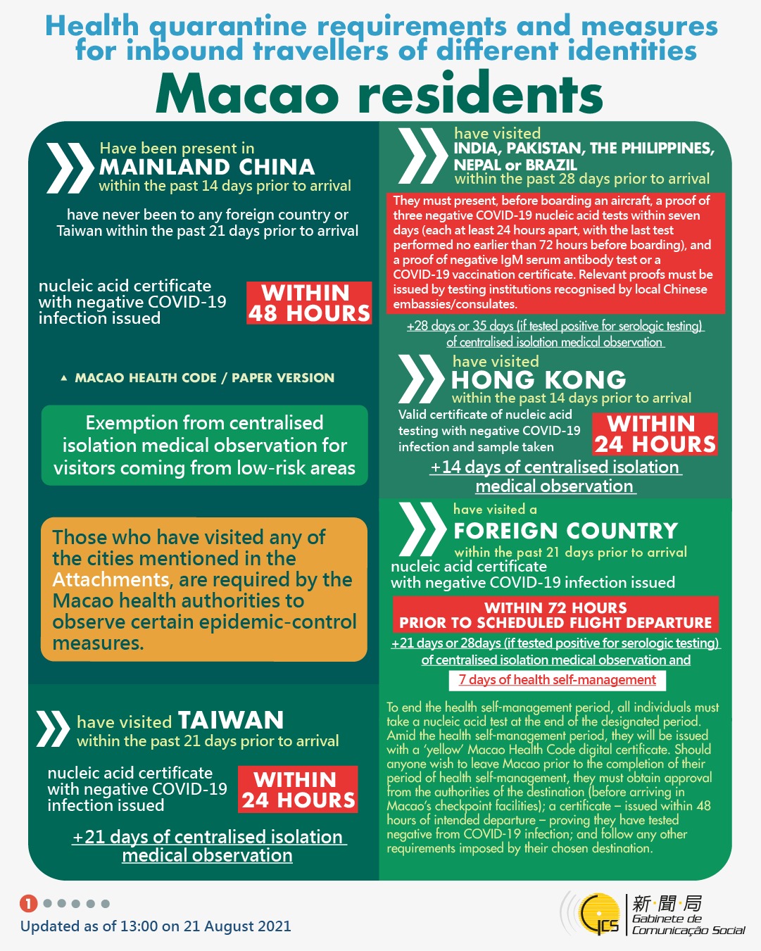 [infographic] 21 August 2021 health quarantine requirements and measures for inbound travellers