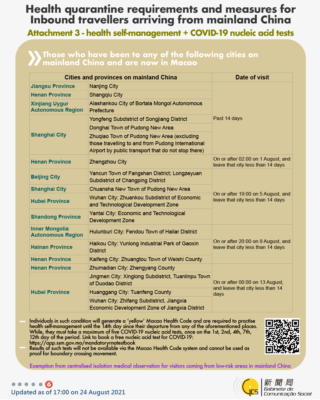 [infographic] 24 August 2021 health quarantine requirements and measures for inbound travellers