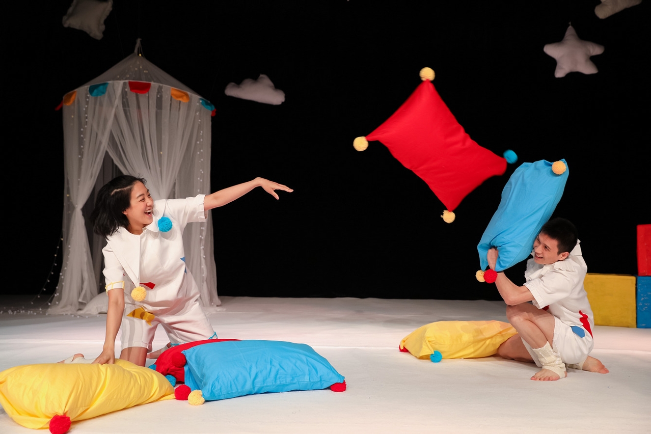 Plunging the audience into the jolly world of two young twins, Little Devil is a lively show originally created by the Shanghainese children’s theatre Little Player. Illustrating the struggles many parents face with their kids at bedtime, this cheerful piece without words revolves around a naughty girl and her (initially) quiet brother. Playing happily around, the siblings will illuminate the white setting with a string of colourful, creative games.