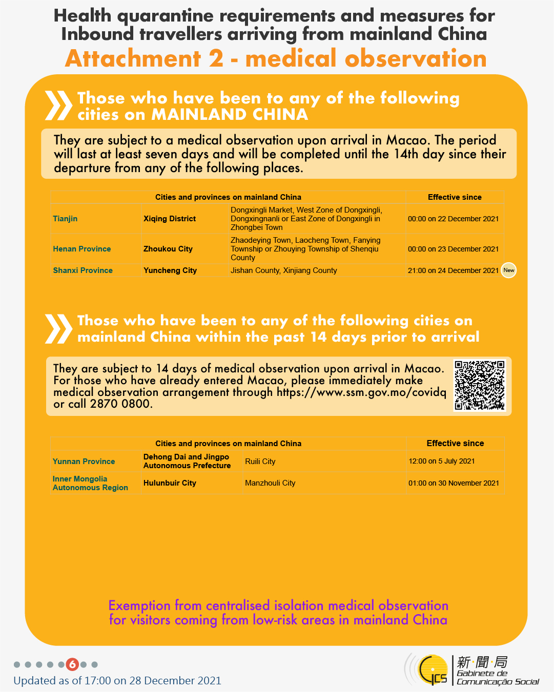 [infographic] 28 December 2021 health quarantine requirements and measures for inbound travellers of different identities.