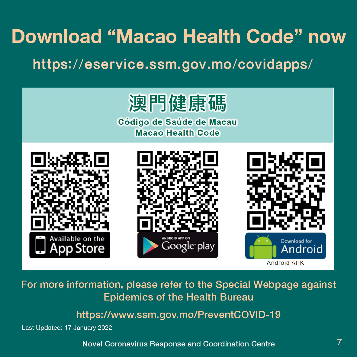 Wechat page (simplified Chinese): macaoinfo 澳門特區發佈