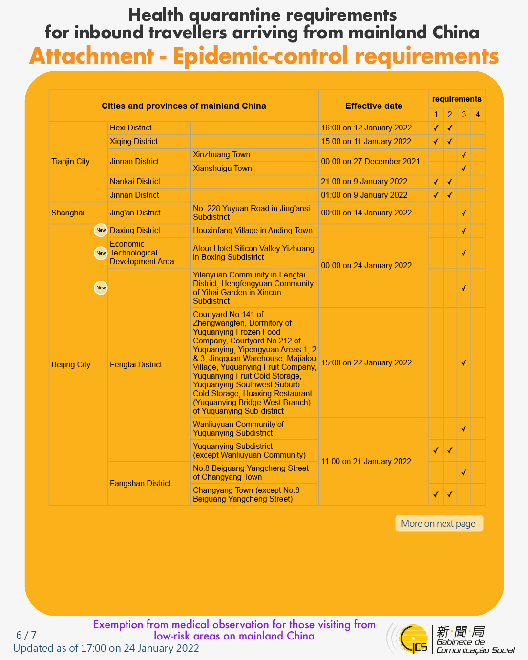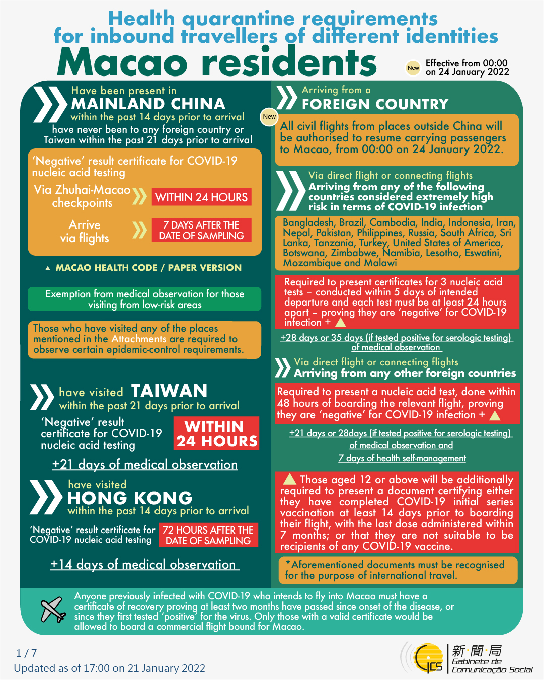 [infographic] 24 January 2022 health quarantine requirements and measures for inbound travellers of different identities.