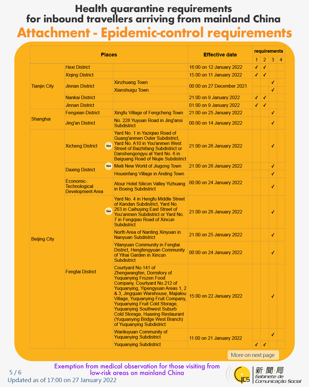 [infographic] 27 January 2022 health quarantine requirements for inbound travellers of different identities.