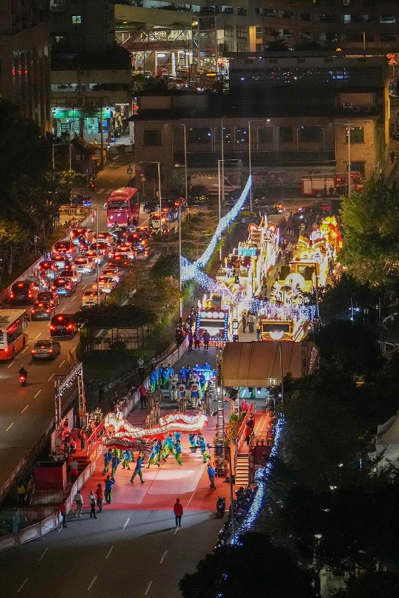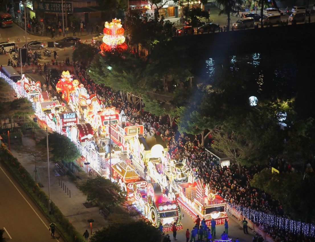 Seven of the 14 floats are presented by governmental entities as follows: Macao Government Tourism Office, Asia Tourism Exchange Center, Municipal Affairs Bureau, Macao Trade and Investment Promotion Institute, Cultural Affairs Bureau, Sports Bureau and Economic Development Bureau of Executive Committee of Guangdong-Macao In-Depth Cooperation Zone in Hengqin. Seven other floats are presented by local enterprises as follows: Galaxy Entertainment Group, Melco Resorts & Entertainment Limited, Sands Resorts Macao, MGM, Wynn Macau, Limited, SJM Resorts, S.A. and Multinational (Holdings) Group. Each float is thoughtfully designed to radiate captivating splendour. To extend the joy of the event, residents and visitors can enjoy the wonderful sight of the floats at Tap Seac Square for free from tomorrow (13 February) until 20 February. The floats will be radiant with illuminations from 6 p.m. to 10 p.m. daily.