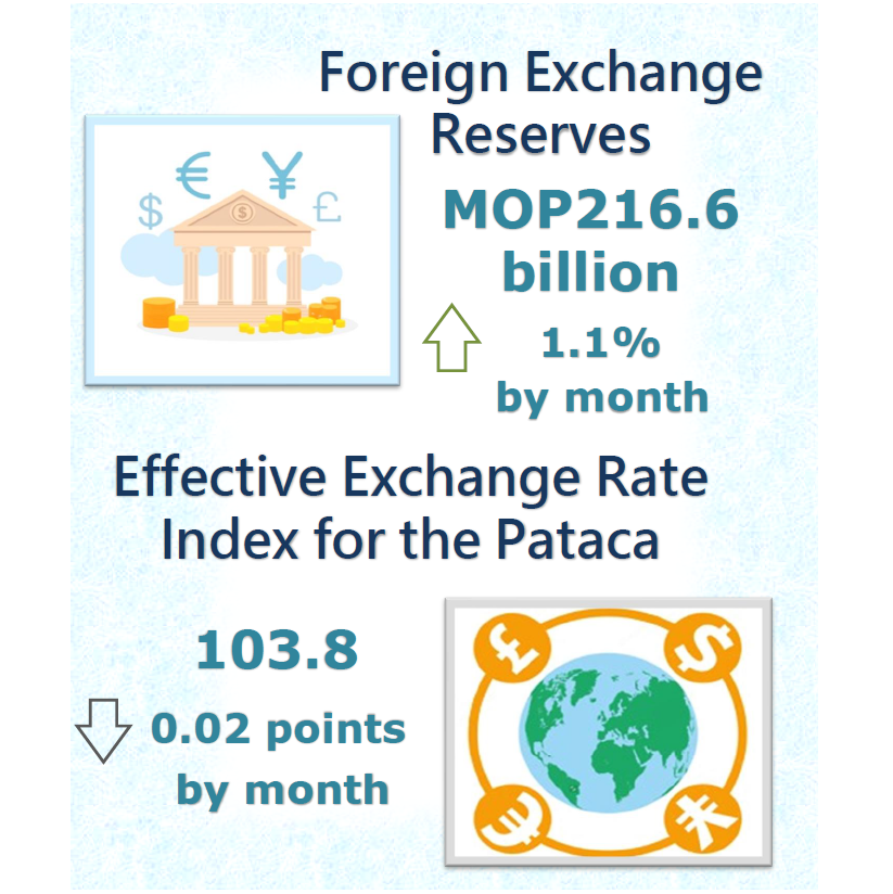 The trade-weighted effective exchange rate index for the pataca fell 0.02 points month-to-month but rose 1.88 points year-on-year to 103.8 in January 2022, implying that overall speaking, the exchange rate of the pataca dropped against the currencies of Macao’s major trading partners on a monthly basis but grew on an annual basis.