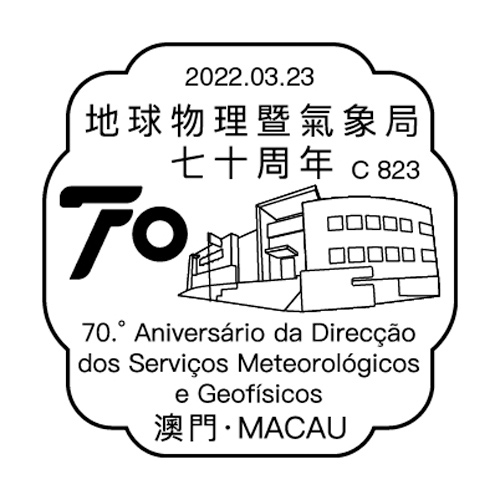To celebrate the 70th Anniversary of the Macao Meteorological and Geophysical Bureau, Macao Post and Telecommunications Bureau announces that a Temporary Post Counter will be set up at the Philatelic Shop of General Post Office, from 15:00 to 18:00 on 23rd March 2022 to provide the commemorative postmark cancellation service for the “70th Anniversary of the Macao Meteorological and Geophysical Bureau”.