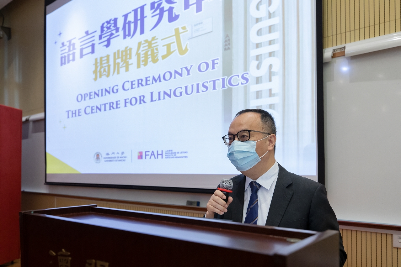 In his speech, Rector Song outlined the background of the establishment of the centre and plans for its future development. According to him, linguistics is one of the strongest areas of research and publication at the UM, and one of the few academic disciplines of UM that is internationally ranked. There are many academic staff who work in the discipline of linguistics, but they are now scattered over several FAH departments — the Departments of Chinese Language and Literature, the Department of English, the Department of Portuguese and the Centre for Japanese Studies, as well as in other faculties. He added that the new centre would create a platform for uniting the UM linguists across the different departments, and as such would help to promote collaborations across different language disciplines through the organisation of academic conferences and the publication of academic books and journals.