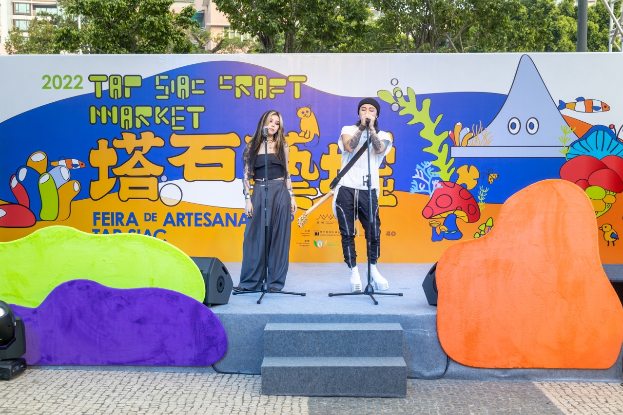 The opening ceremony was held on 21 April, at Tap Siac Square, and was officiated by the Secretary for Social Affairs and Culture of the Macao SAR Government, Ao Ieong U; the Deputy Director of the Liaison Office of the Central People’s Government in the Macao SAR, Yan Zhichan; the President of the Cultural Affairs Bureau of the Macao SAR Government, Leong Wai Man; the President of the Administration Committee on Municipal Affairs of the Municipal Affairs Bureau of the Macao SAR Government, José Maria da Fonseca Tavares; and the President of Administrative Committee of the Cultural Development Fund of the Macao SAR Government, Cheong Kin Hong. At the opening ceremony, the indie rock band from Mainland China, “EXCUSE ME”, served as a guest band and presented various songs with an independent and distinctive musical style, inaugurating the Tap Siac Craft Market with both visual and auditory splendour in its performance.