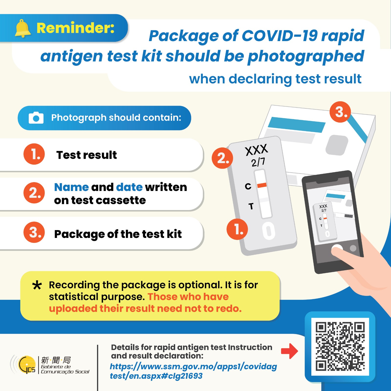 [infographic] Package of COVID-19 rapid antigen test kit should be photographed when declaring test result.