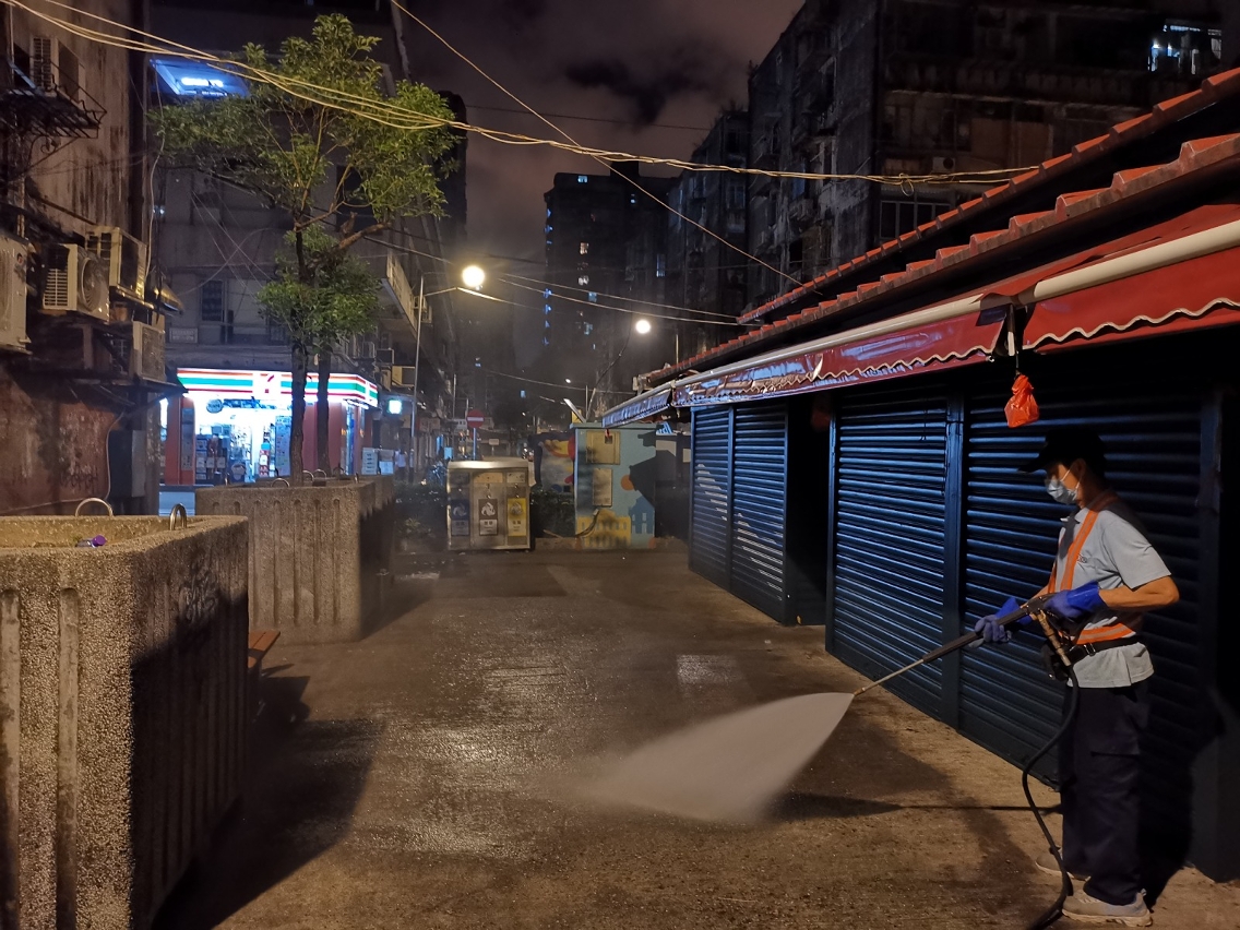 IAM continues to step up cleaning and disinfection of all municipal markets and hawker areas, and increases the frequency of cleaning the public facilities with diluted bleach. Thorough cleaning and disinfection are even carried out during the daily closing hours of the markets with the use of high-pressure water hoses and sprayers to enhance the disinfection effects.