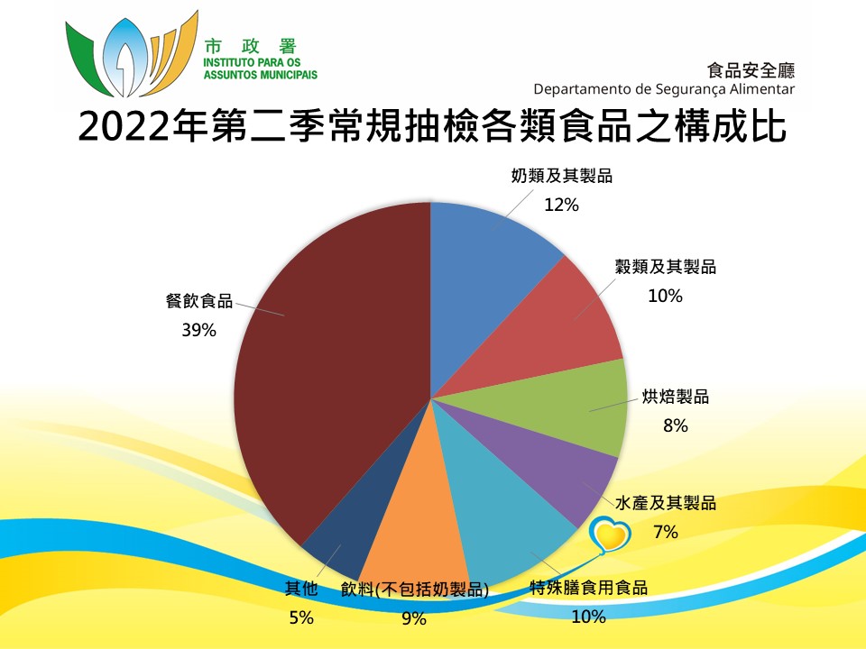 The Municipal Affairs Bureau (IAM) continuously carries out food safety supervision and sampling tests to assess the consumption risks of food products available on the market and their hygiene conditions. A total of 553 food samples on the market were randomly collected in the second quarter of this year for tests, resulting in an overall pass rate of 99.6%.