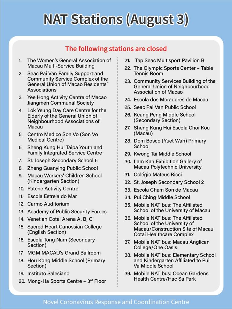 | Self-paid sampling stations (prior booking is required; result will be uploaded to Macao Health Code and paper report can be provided) |