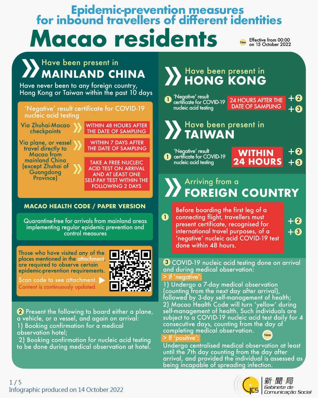 [infographic] Epidemic-prevention measures for inbound travellers of different identities (14 October 2022 )