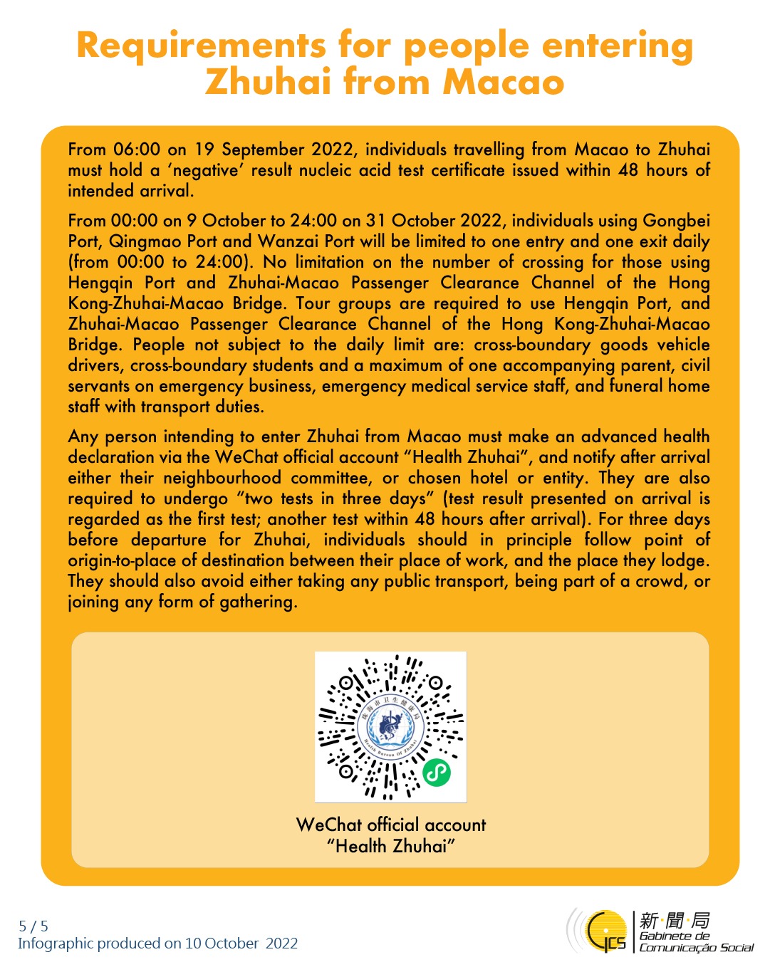 • Requirements for people entering Zhuhai from Macao