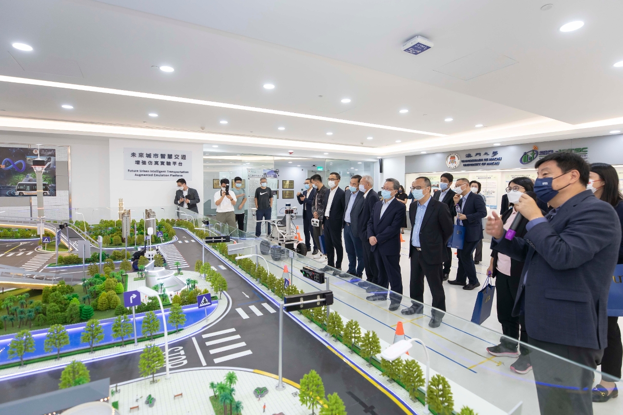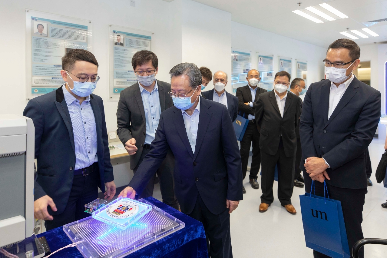 Members of the delegation visited the State Key Laboratory of Internet of Things for Smart City (SKL-IOTSC), the State Key Laboratory of Analog and Mixed-Signal VLSI (SKL-AMSV), laboratories of the Institute of Applied Physics and Materials Engineering (IAPME), the State Key Laboratory of Quality Research in Chinese Medicine (SKL-QRCM), and laboratories of the Faculty of Health Sciences (FHS). They all spoke highly of UM's development and research achievements in recent years. They expressed hope that the university would continue to integrate technological innovation with the socioeconomic development of Macao and would make use of the policy advantages for industrial development of the Guangdong-Macao In-depth Cooperation Zone in Hengqin to facilitate the transfer of outstanding research results at the university, in order to contribute to moderate economic diversification of Macao.