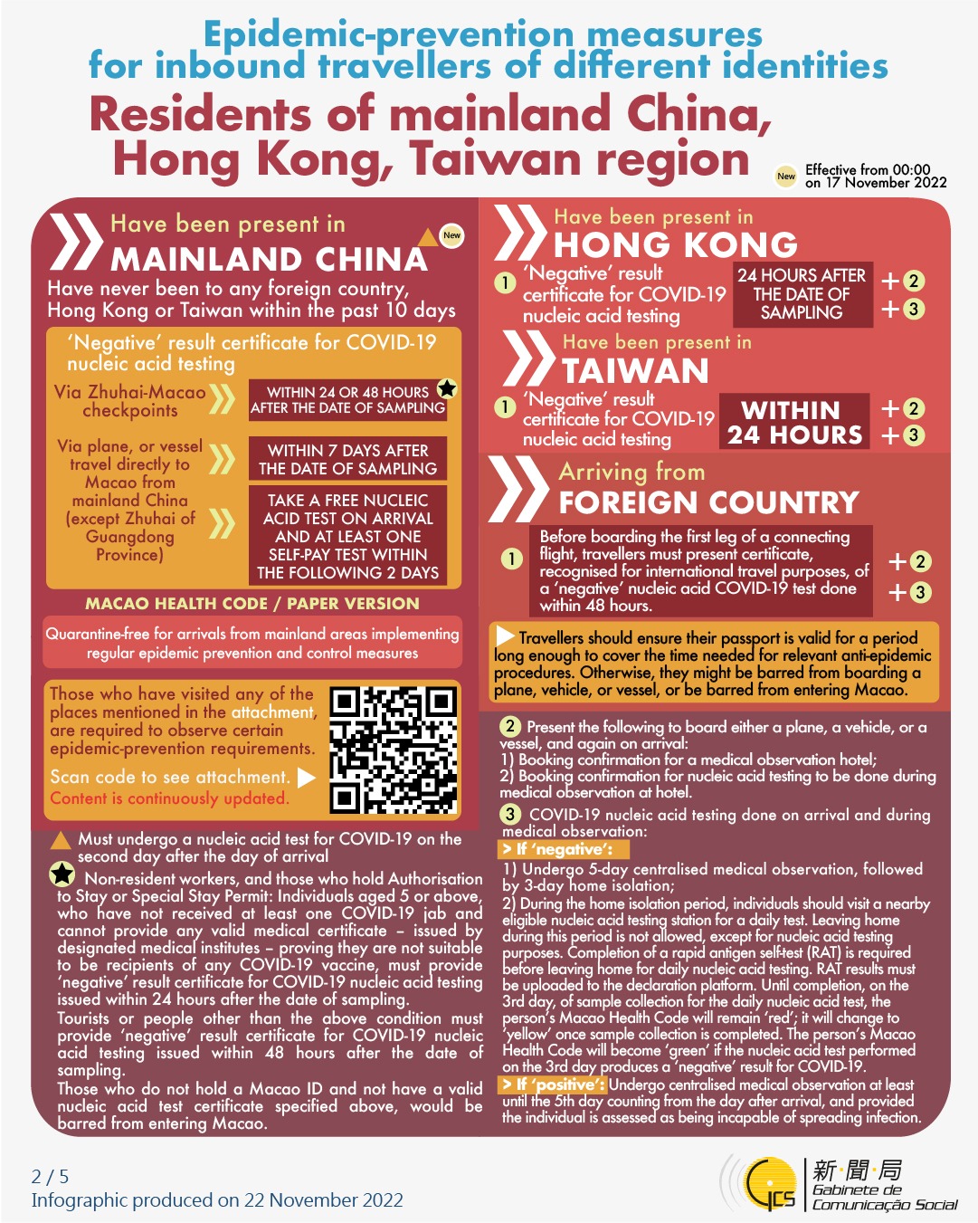 [infographic] Epidemic-prevention measures for inbound travellers of different identities (22 November 2022 )