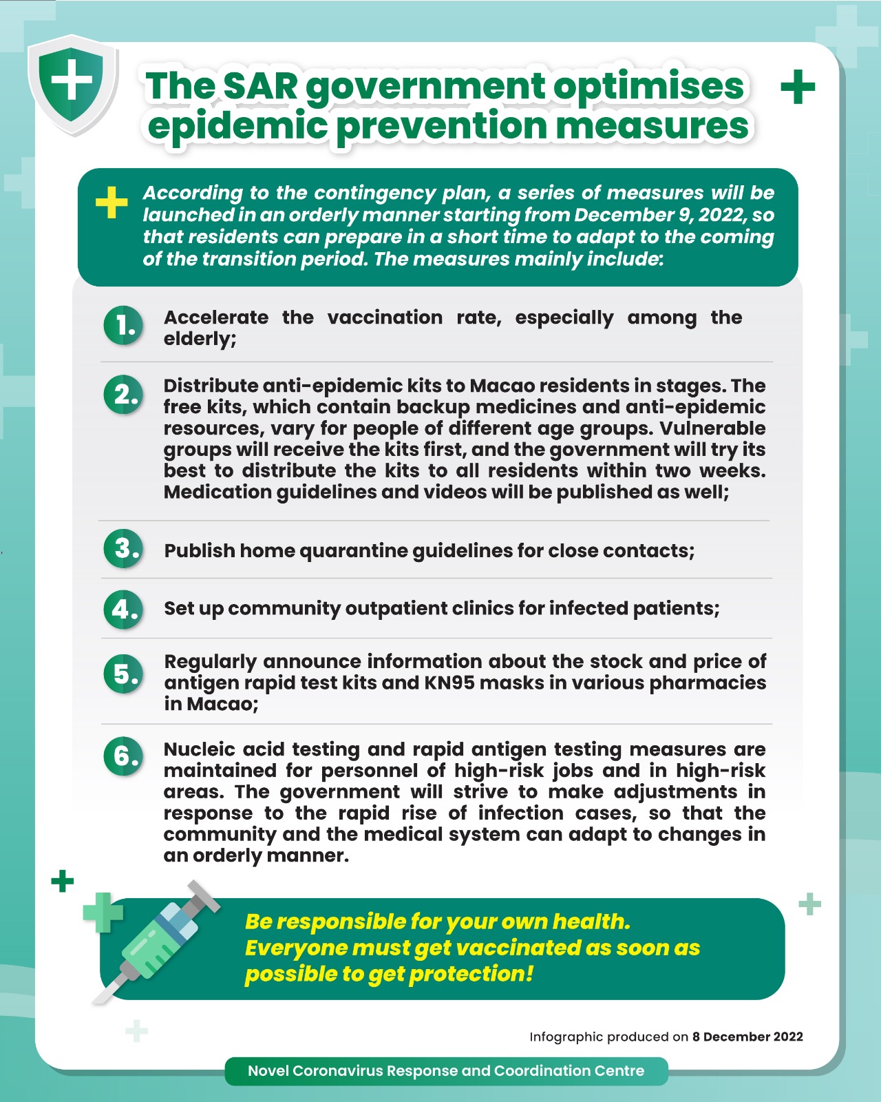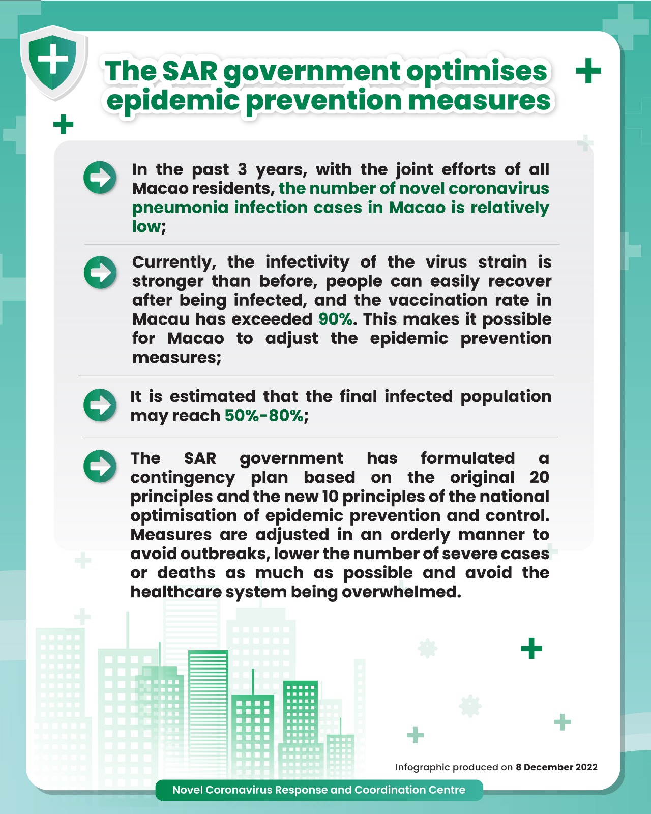 • The SAR government optimises epidemic prevention measures