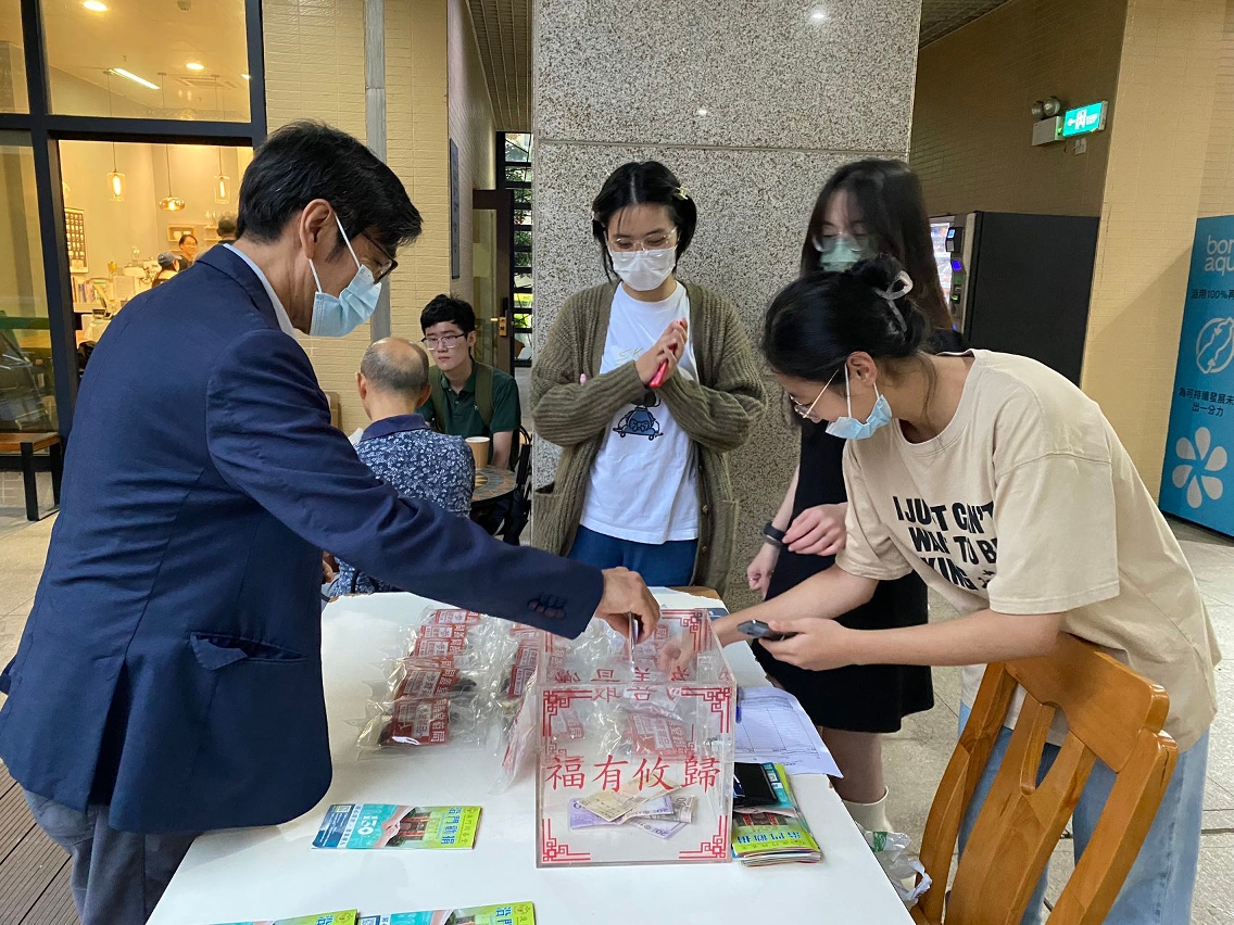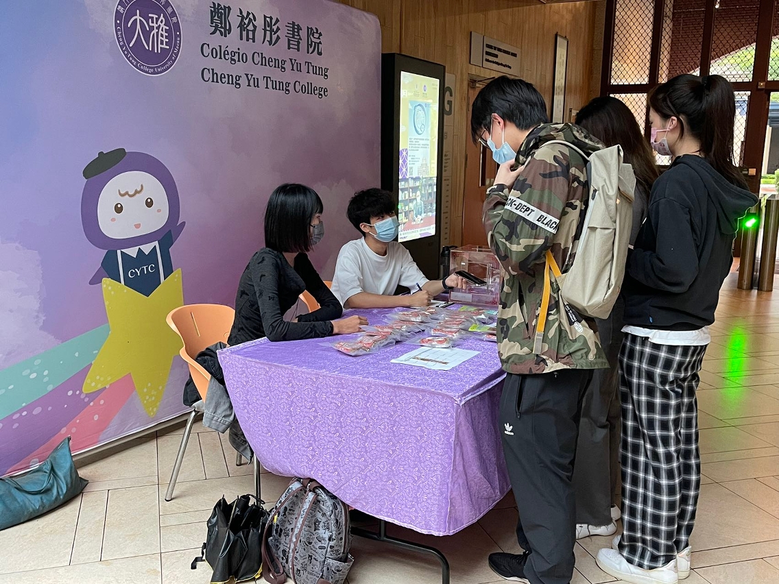 Booths for the charity sale were set up by students at 11 locations on the campus, namely Anthony Lau Building, Chao Kuang Piu College, Cheng Yu Tung College, Cheong Kun Lun College, Choi Kai Yau College, Henry Fok Pearl Jubilee College, Lui Che Woo College, Ma Man Kei and Lo Pak Sam College, Moon Chun Memorial College, Shiu Pong College, and Stanley Ho East Asia College. Four herbal tea bags tailor-made by the Chinese medicine pharmacy of Tung Sin Tong were for sale at the booths, namely a tea for detoxing the liver, improving eyesight, and nourishing the stomach; an American ginseng tea; a tea for reinforcing Qi and nourishing blood; and a tea for strengthening health and nourishing the liver. The campaign was very well received by UM students, faculty, and staff and 428 herbal tea bags were sold, raising a total of MOP 26,043 (including donations of HKD 693 and RMB 100).