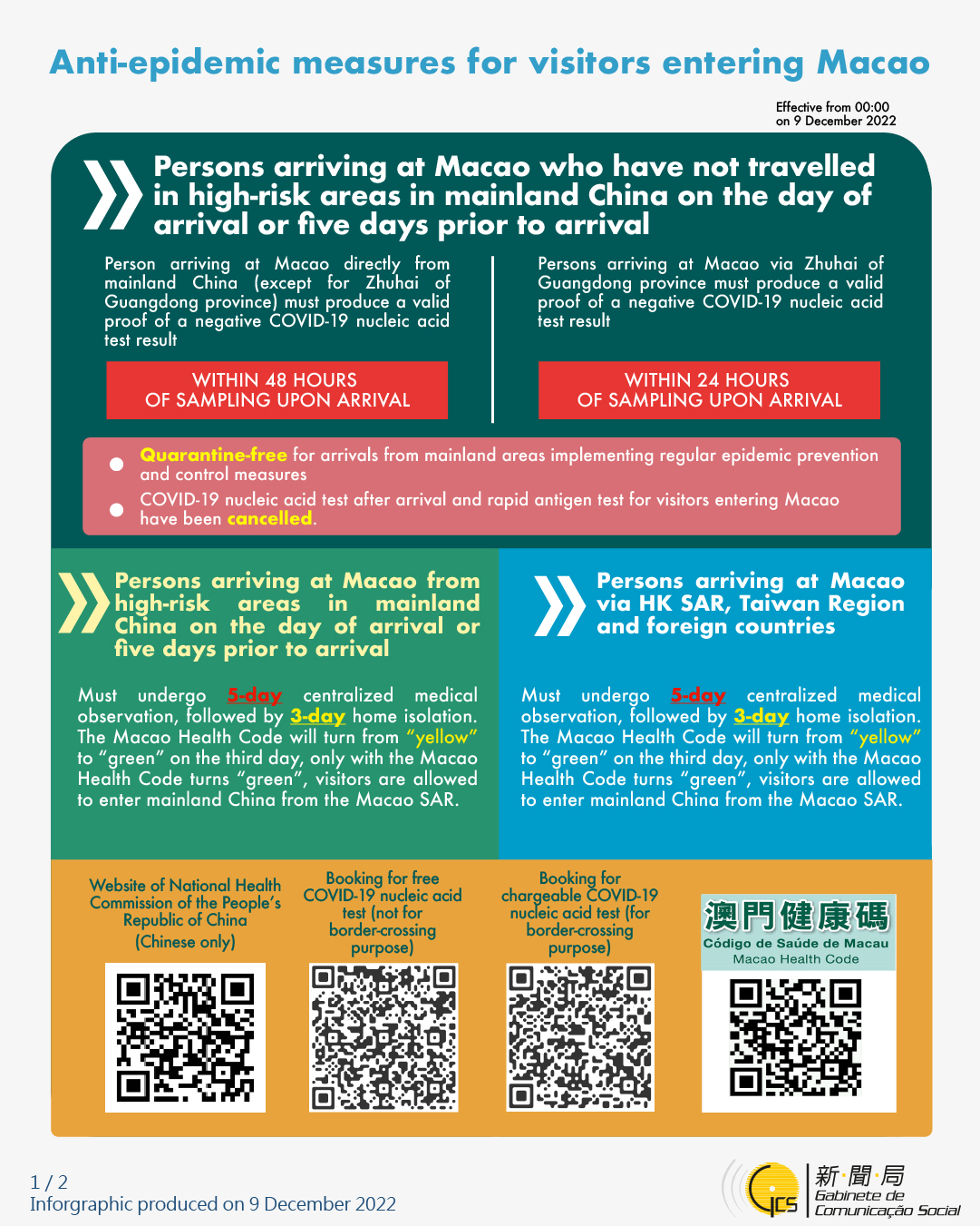 [infographic] Anti-epidemic measures for visitors entering Macao (10 December 2022 )
