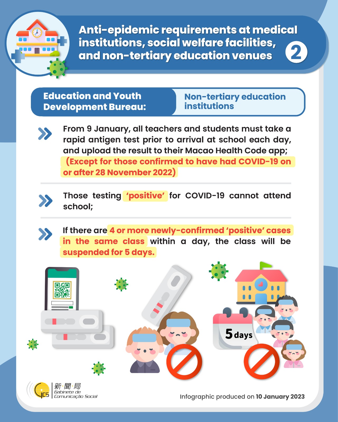• Anti-epidemic requirements at medical institutions, social welfare facilities, and non-tertiary education venues 2