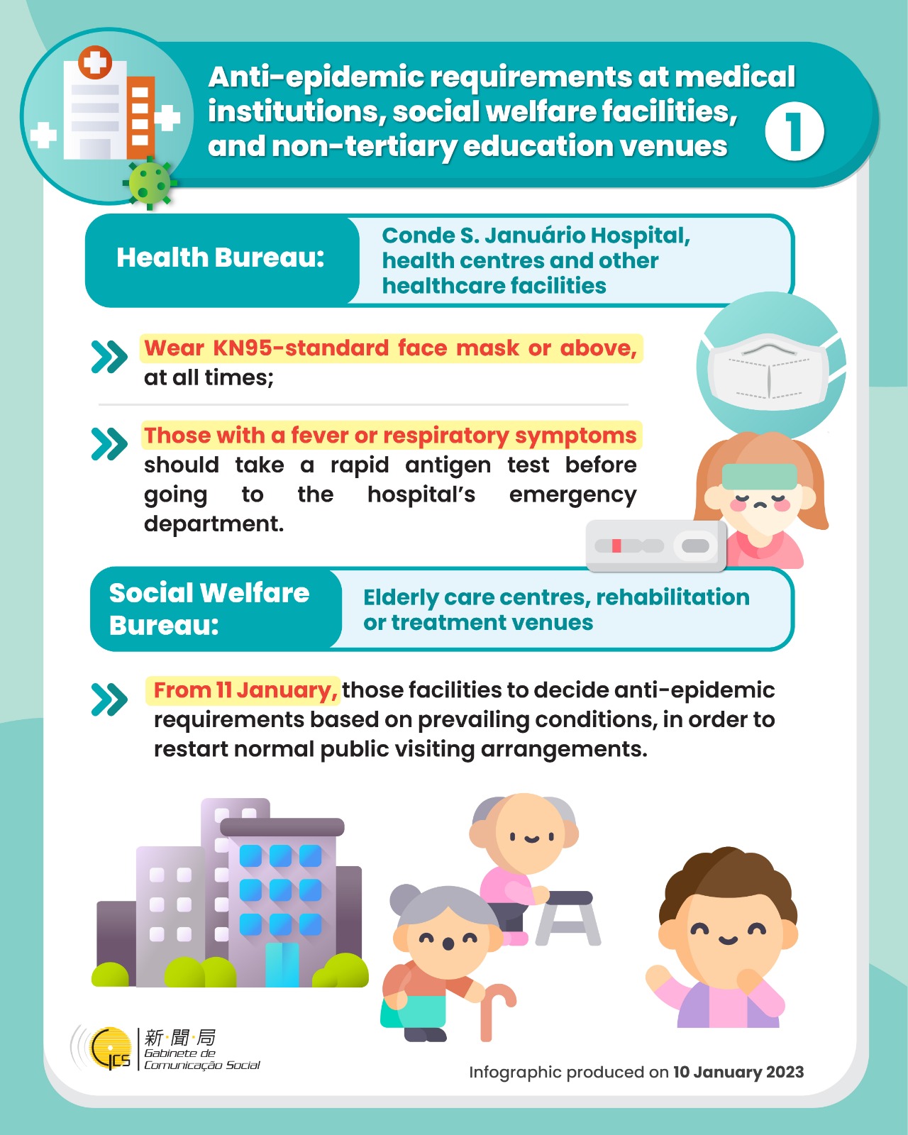 • Anti-epidemic requirements at medical institutions, social welfare facilities, and non-tertiary education venues 1