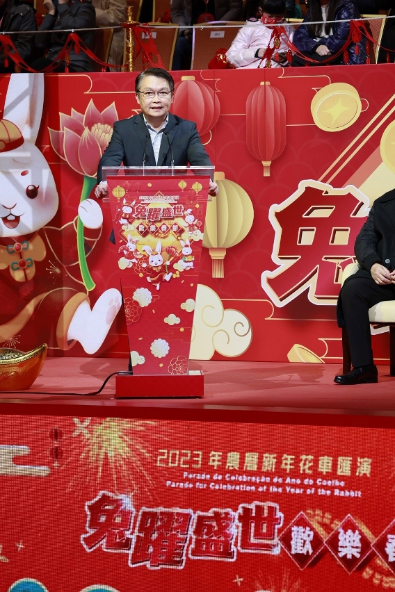 Secretary for Economy and Finance, Lei Wai Nong, remarked that thanks to the joint great effort of different entities, the Parade for Celebration of Chinese New Year has become one of Macao’s prestigious festive events. He hopes that the event can let Macao residents and visitors experience Macao’s diverse glamour as a world centre of tourism and leisure, as the tourism industry ushers in a new chapter of recovery. The Macao SAR Government will carry on the efforts and collaborate with members of different sectors to present a diversity of spectacular mega events so that every participant can “experience Macao unlimited”, while integration will be continuously deepened among “tourism +”, contributing to adequate economic diversification.